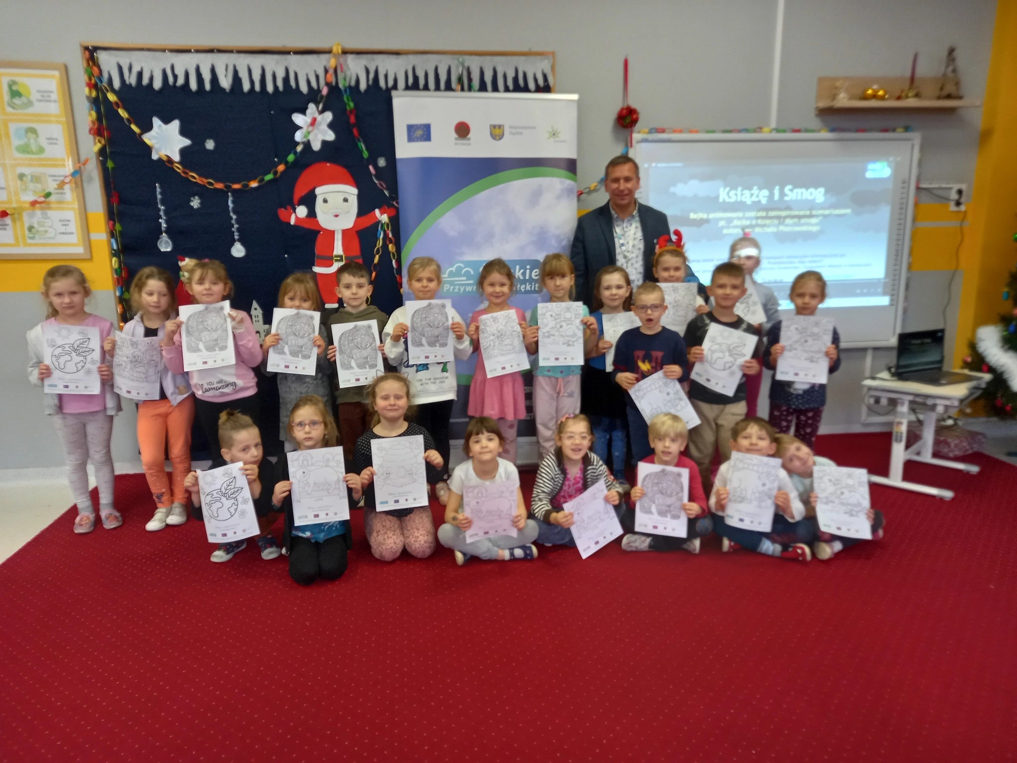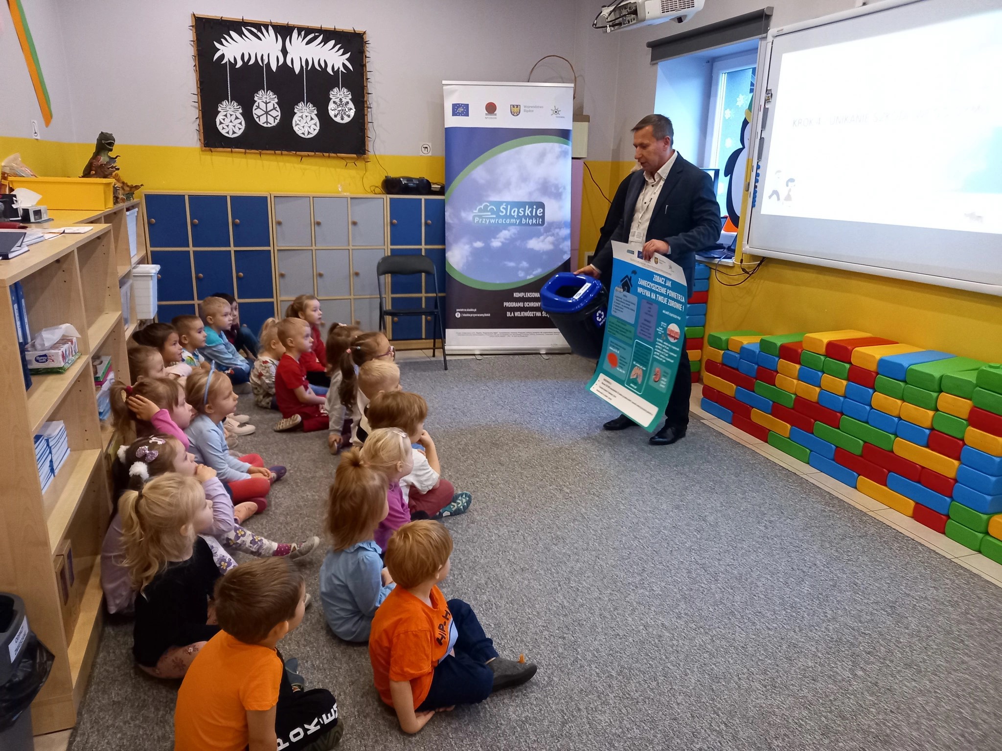In both institutions, children were introduced to the LIFE project "Śląskie. Restoring the Blue," within which they were shown the educational film "The Prince and SMOG." Subsequently, the phenomenon of smog and the impact of air pollutants emitted from various sources on health were thoroughly discussed. Children also discussed what actions to take to protect themselves from smog and counteract this phenomenon.