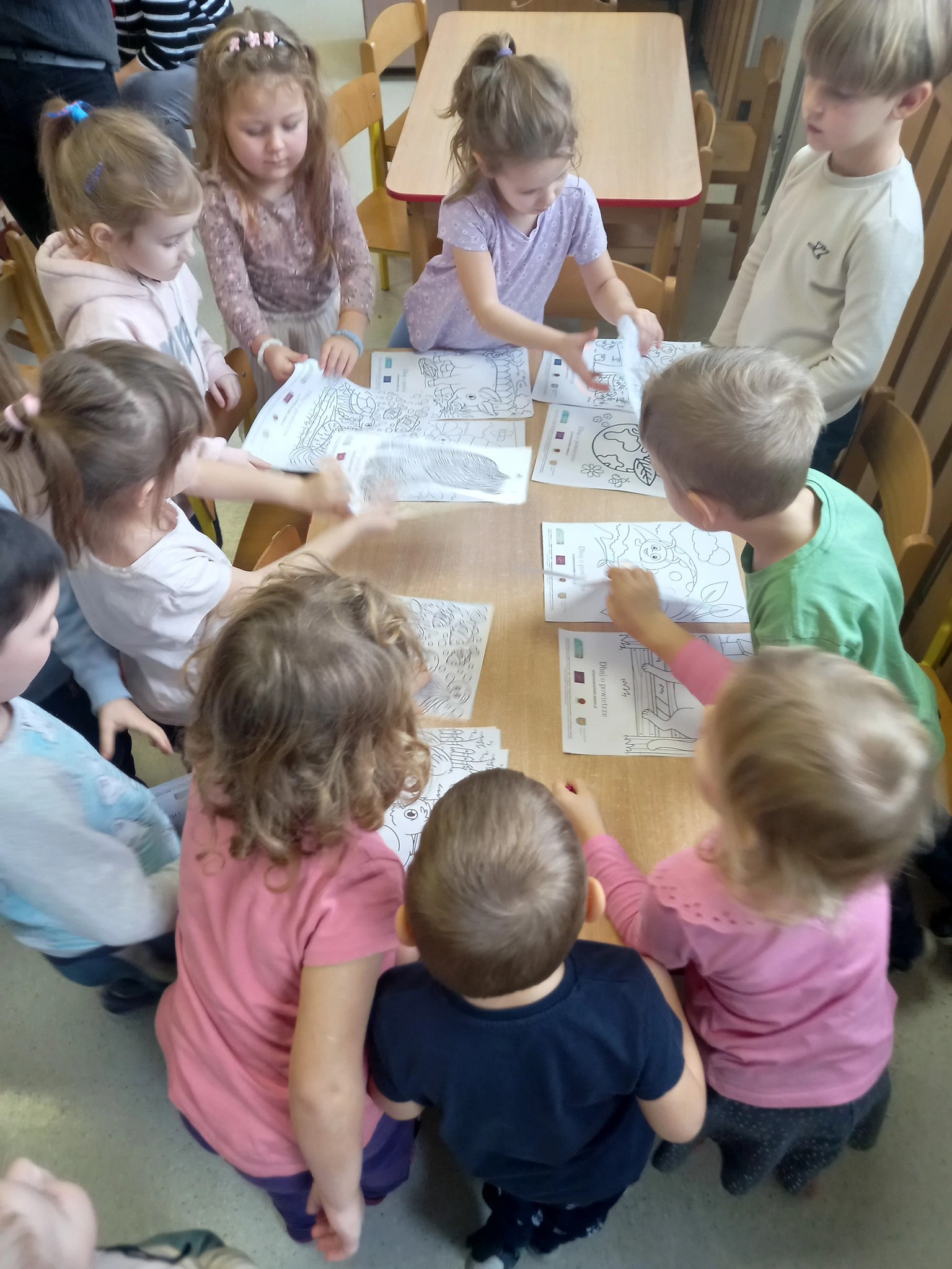 The children were given coloring pages related to ecology. Eco-themed games were also gifted, and for the older participants, posters and leaflets informing about the project were provided.