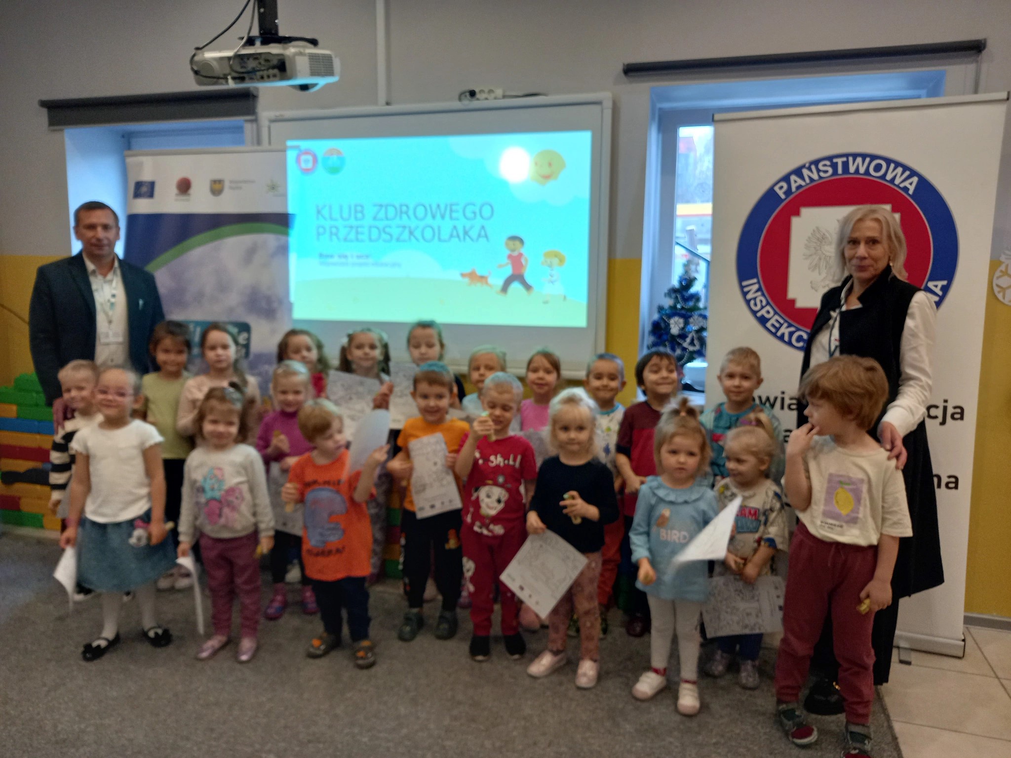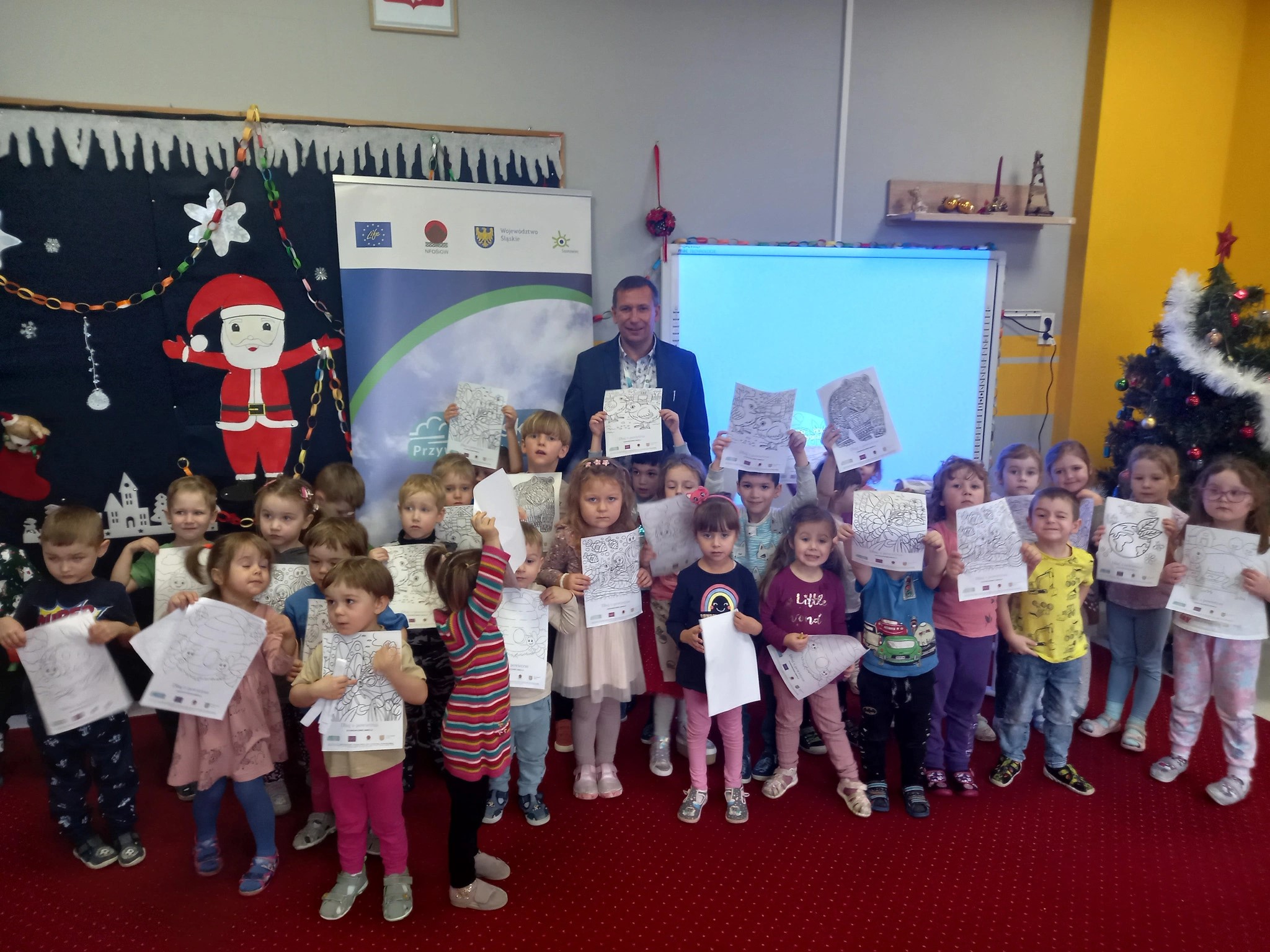 The most recent preschools visited this year by the municipal eco-manager, Grzegorz Wierzbicki, were Municipal Preschool No. 35 at 3 Zagórska Street and the Non-Public Preschool at 124a Braci Mieroszewskich Street. During the lectures, 52 and 21 preschoolers participated, respectively. Additionally, at the Non-Public Preschool, Mrs. Sylwia Wojtal from the Sosnowiec SANEPiD accompanied the eco-managers, responsible for leading the Healthy Preschooler Club
