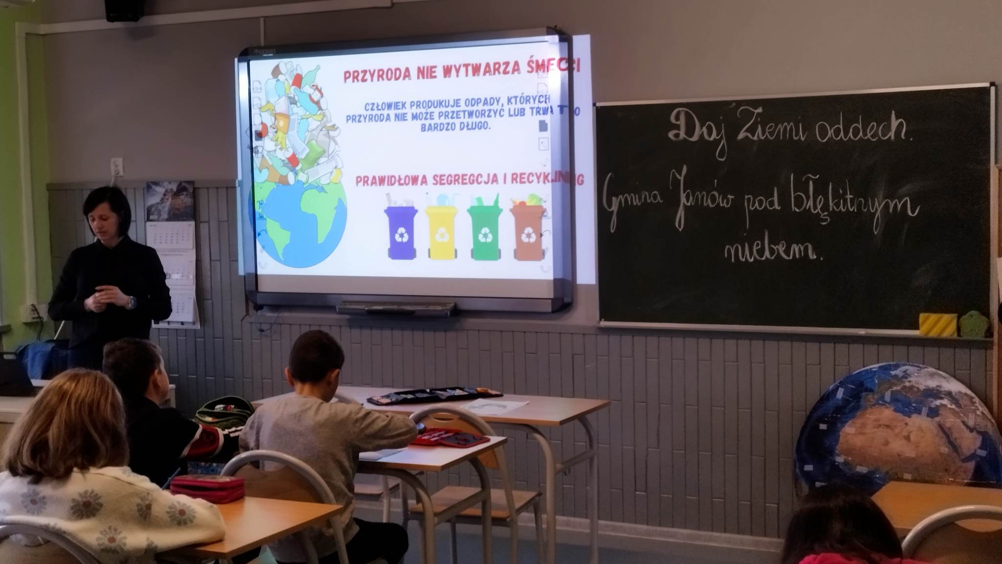 Under the slogan "Give the Earth a Breath," the Janów Educational Institutions celebrated this year's Earth Day. As part of the LIFE project "Śląskie. Restoring the Blue," lectures and educational activities were organized for students in grades 1 to 7. During the workshops, the Eco-Advisor discussed various topics related to ecological threats, including air pollution, water contamination, climate change, and excessive waste production.
