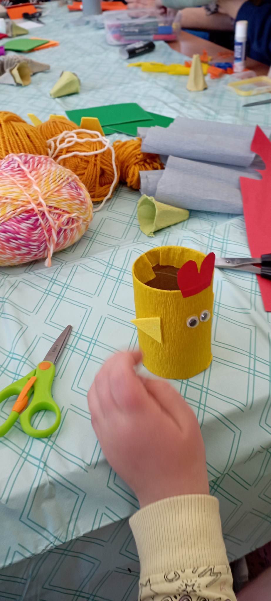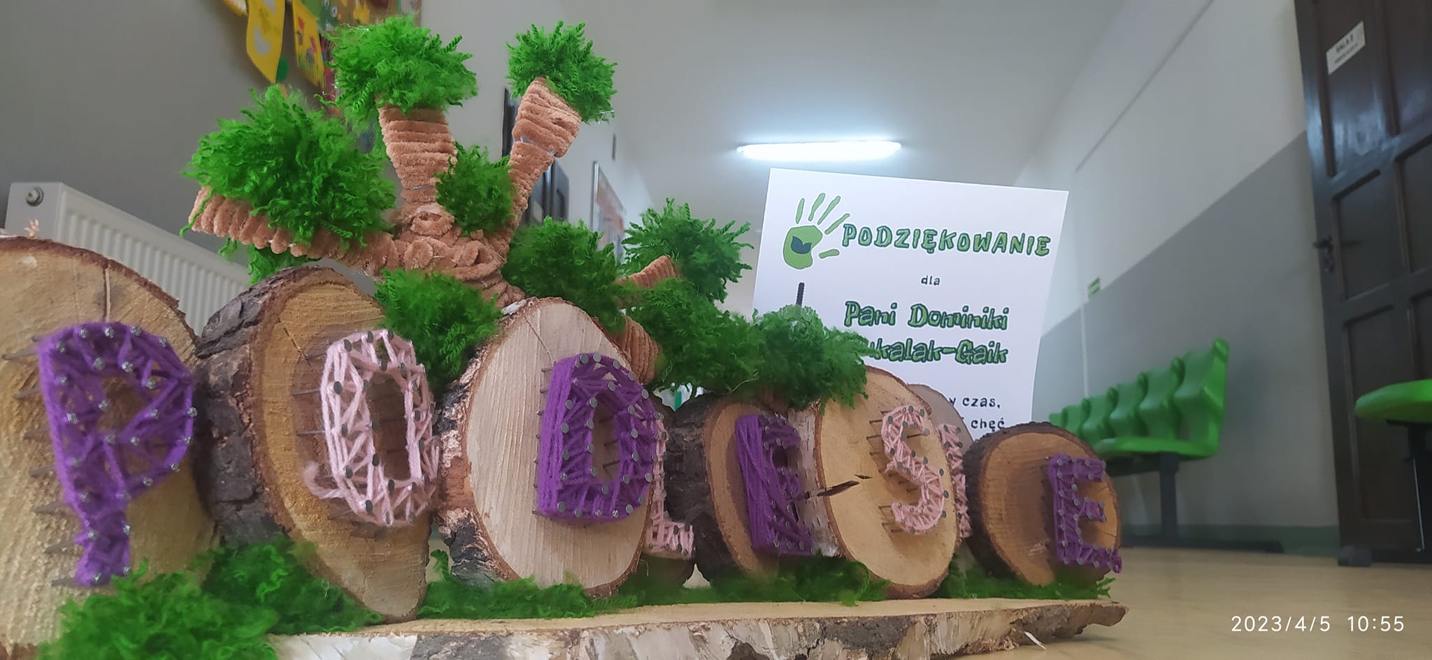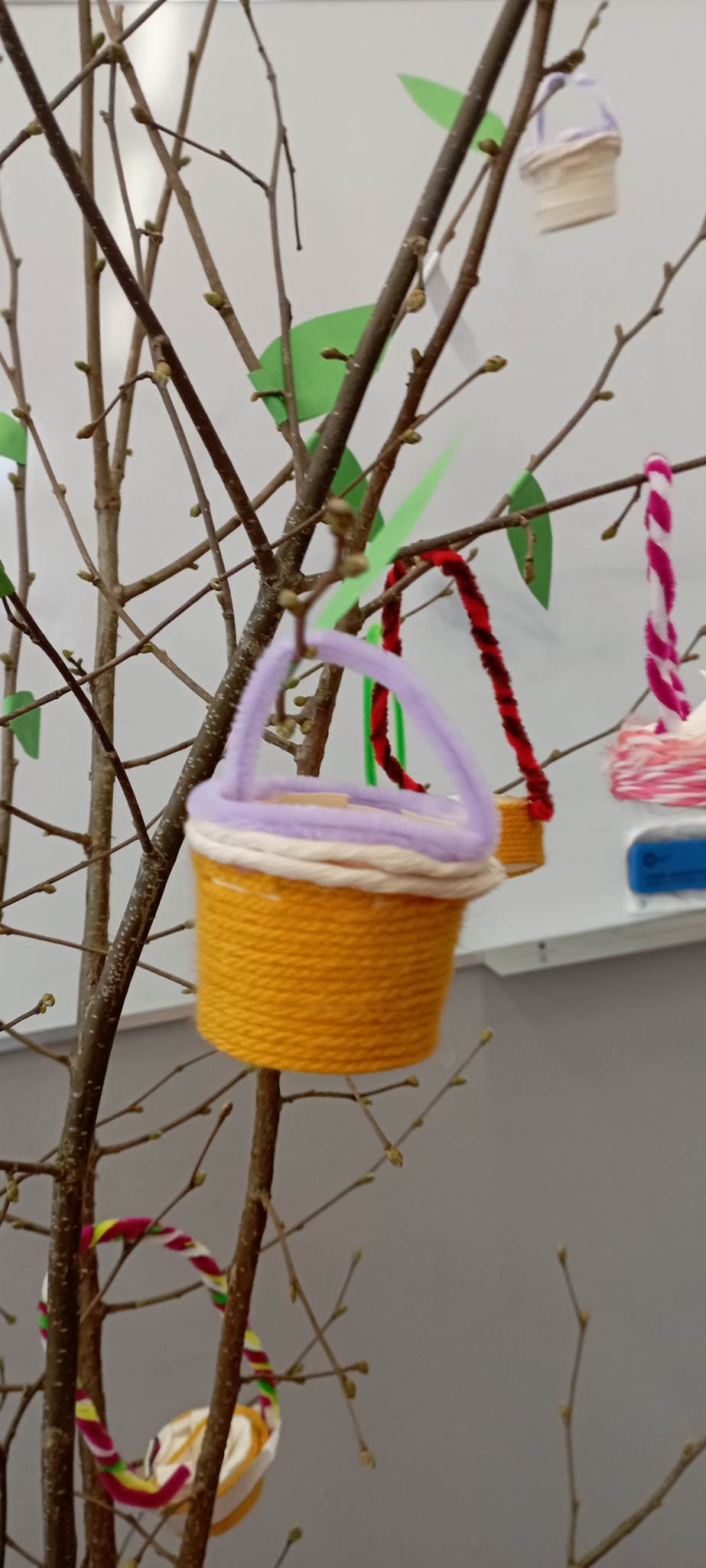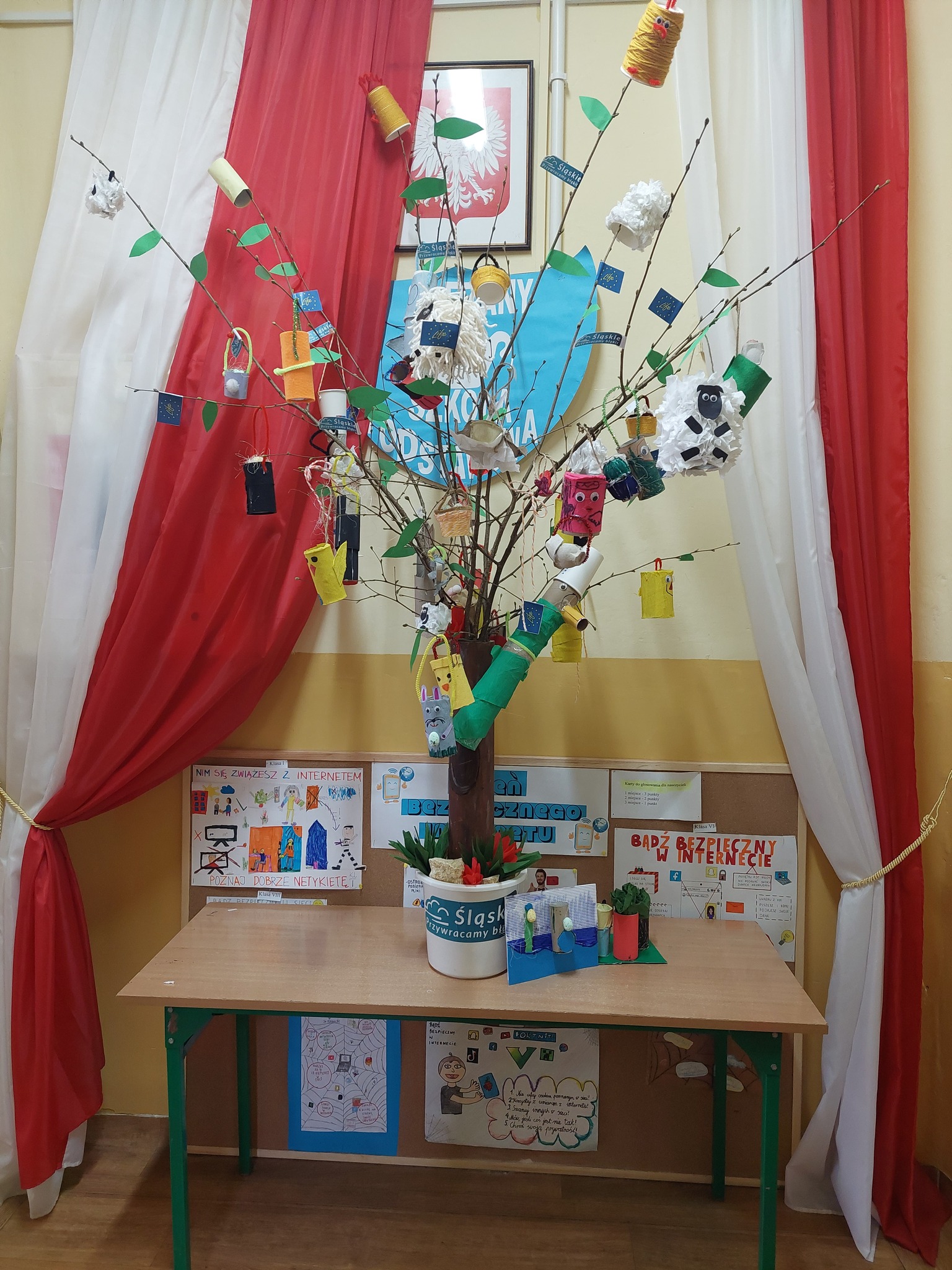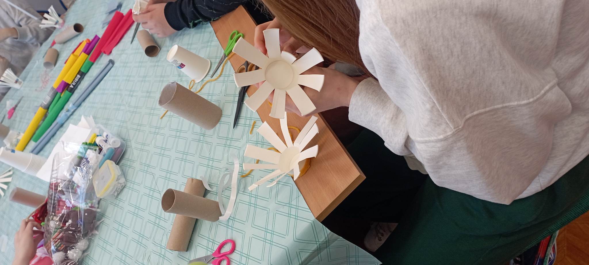 At the beginning of April, the Eco-Advisor conducted educational and creative workshops titled "Eco Easter Decoration" at the Primary School in Podlesie and the Primary School in Ślęzany. The workshops were held in the spirit of DIY (do-it-yourself). Students decorated spring trees with baskets, chicks, lambs, and rabbits made from paper rolls and paper cups.