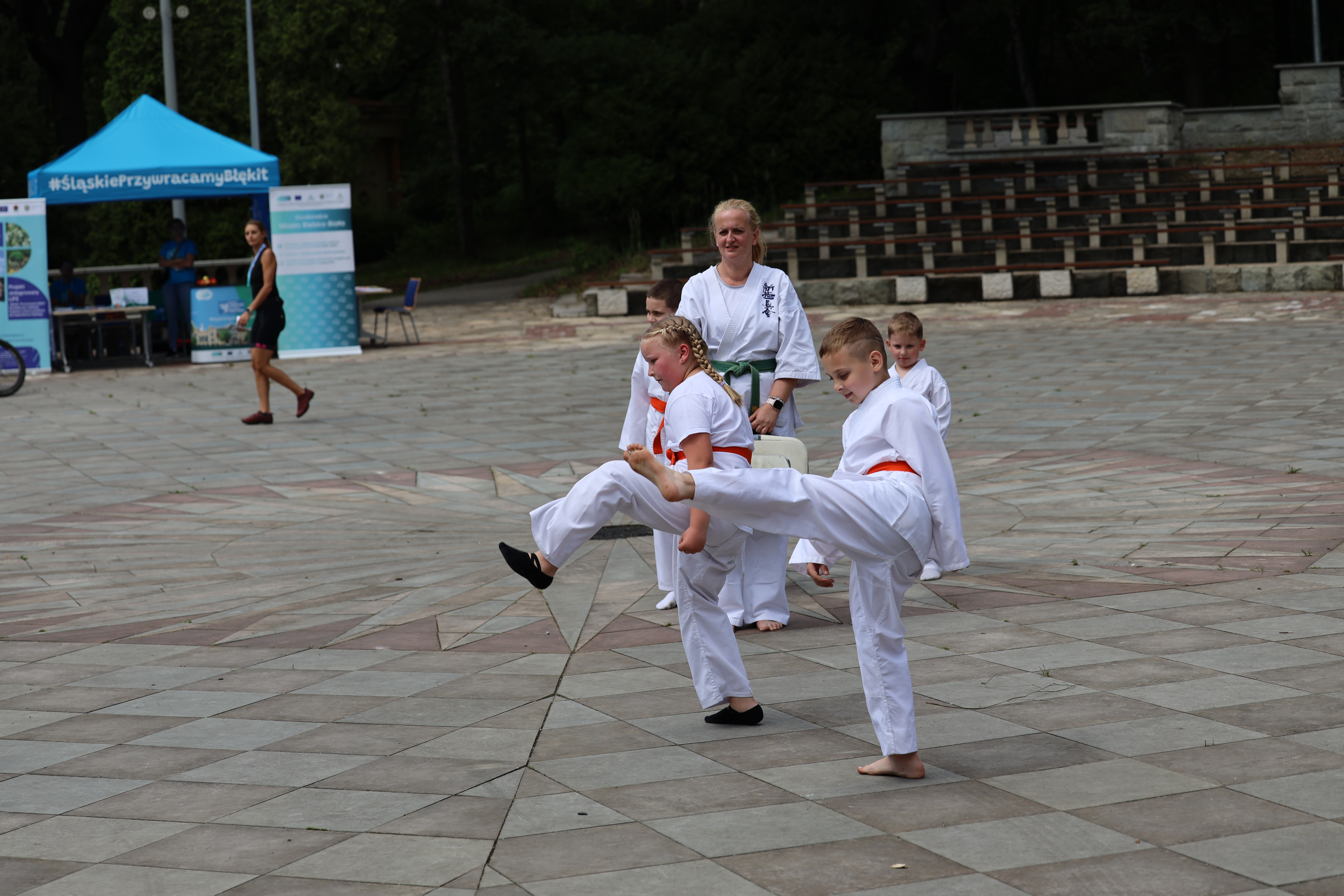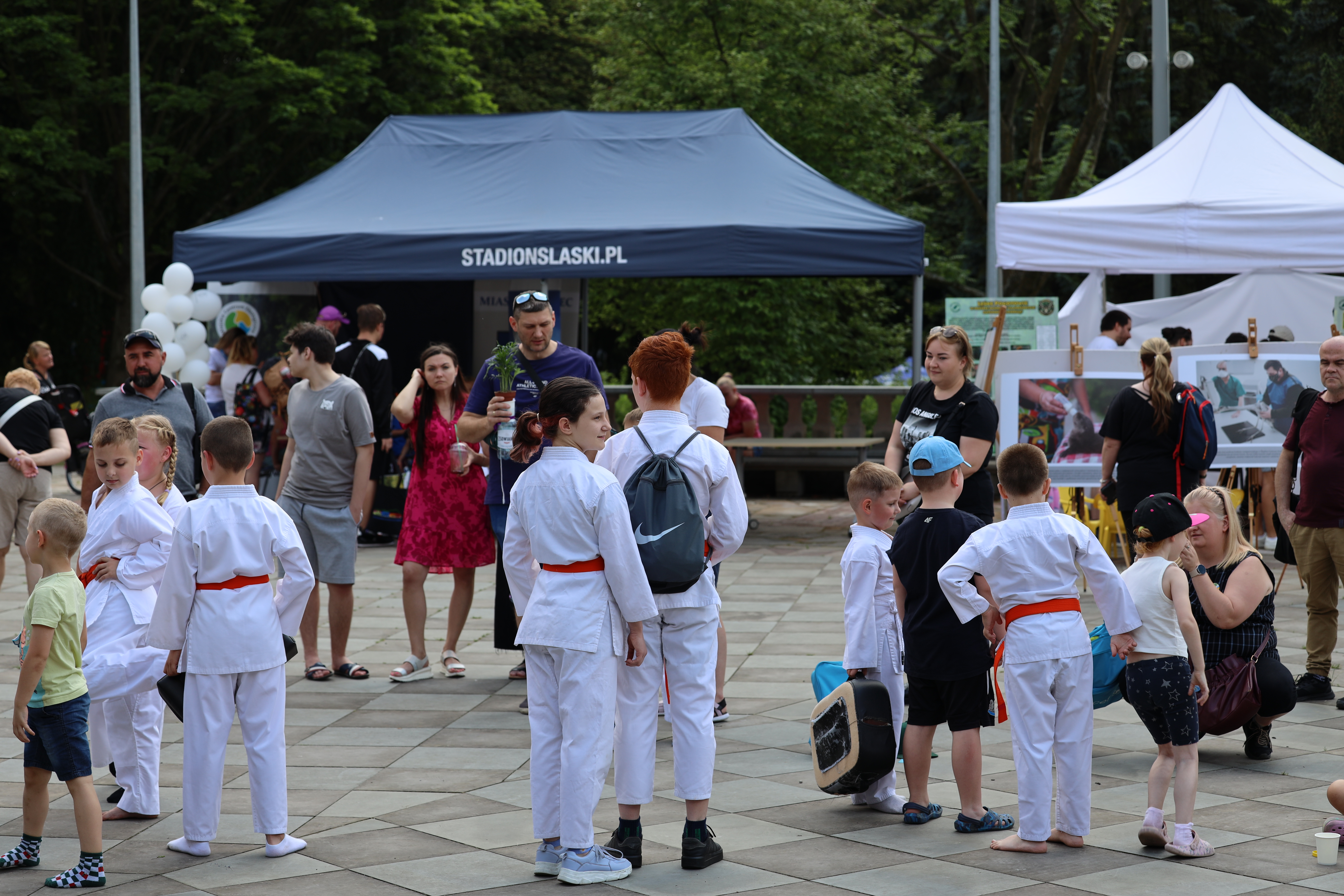 Sports enthusiasts had the opportunity to participate in various activities, such as stationary bike spinning sessions, outdoor yoga sessions, and silent fitness. Runners could join training and jogs in the park with runners from the Silesia Marathon. Karate demonstrations and exercise sessions were also available.