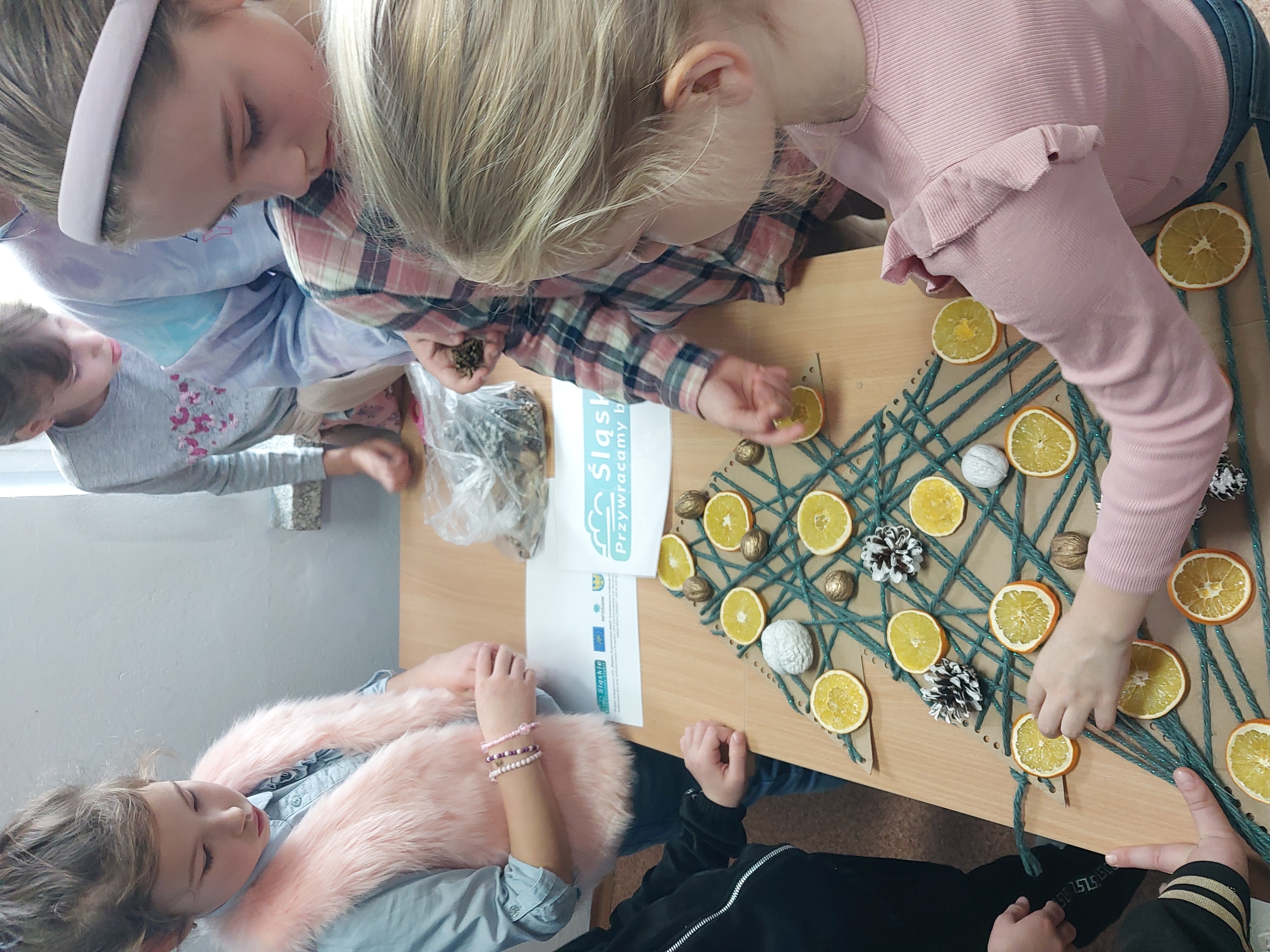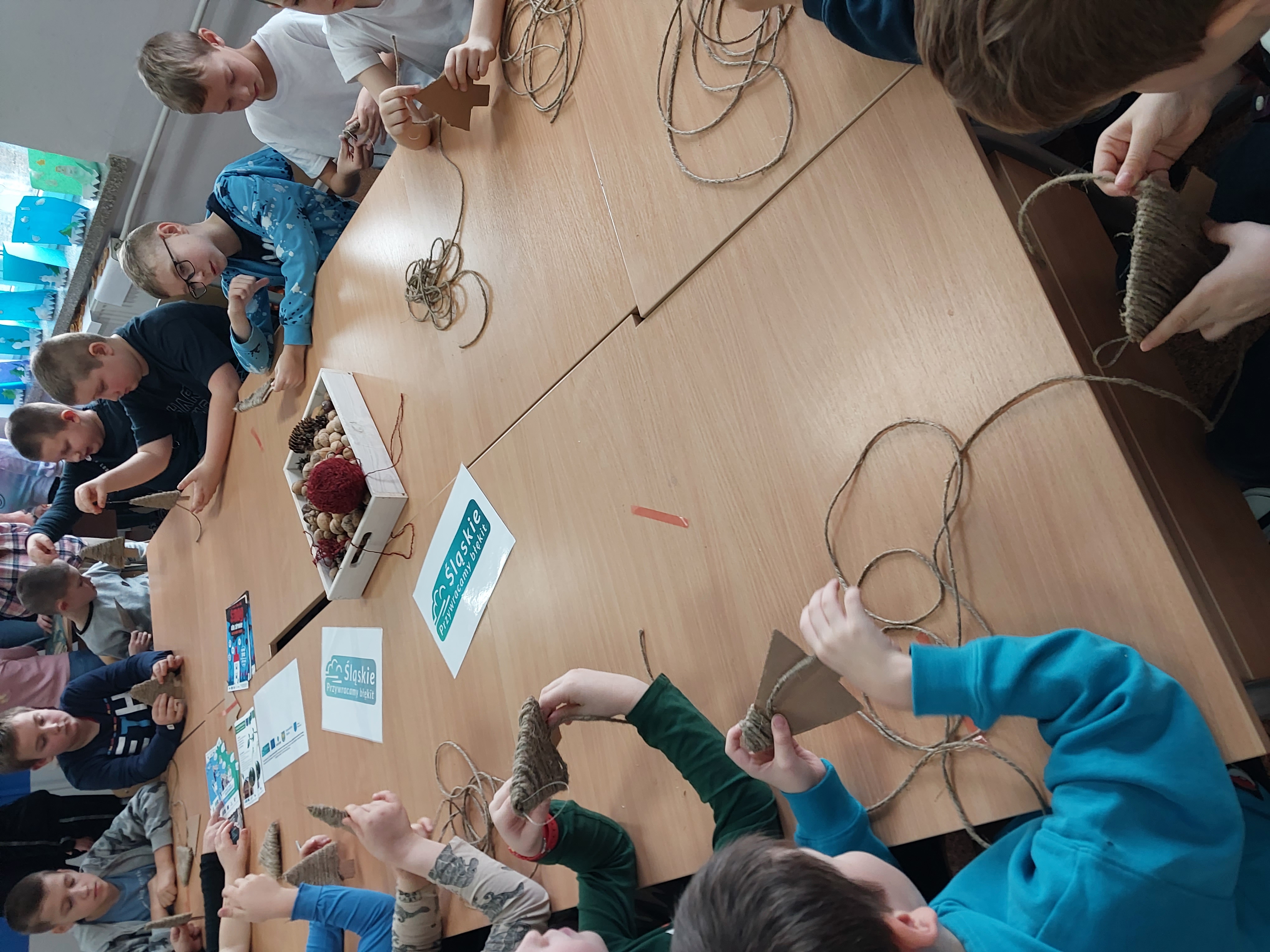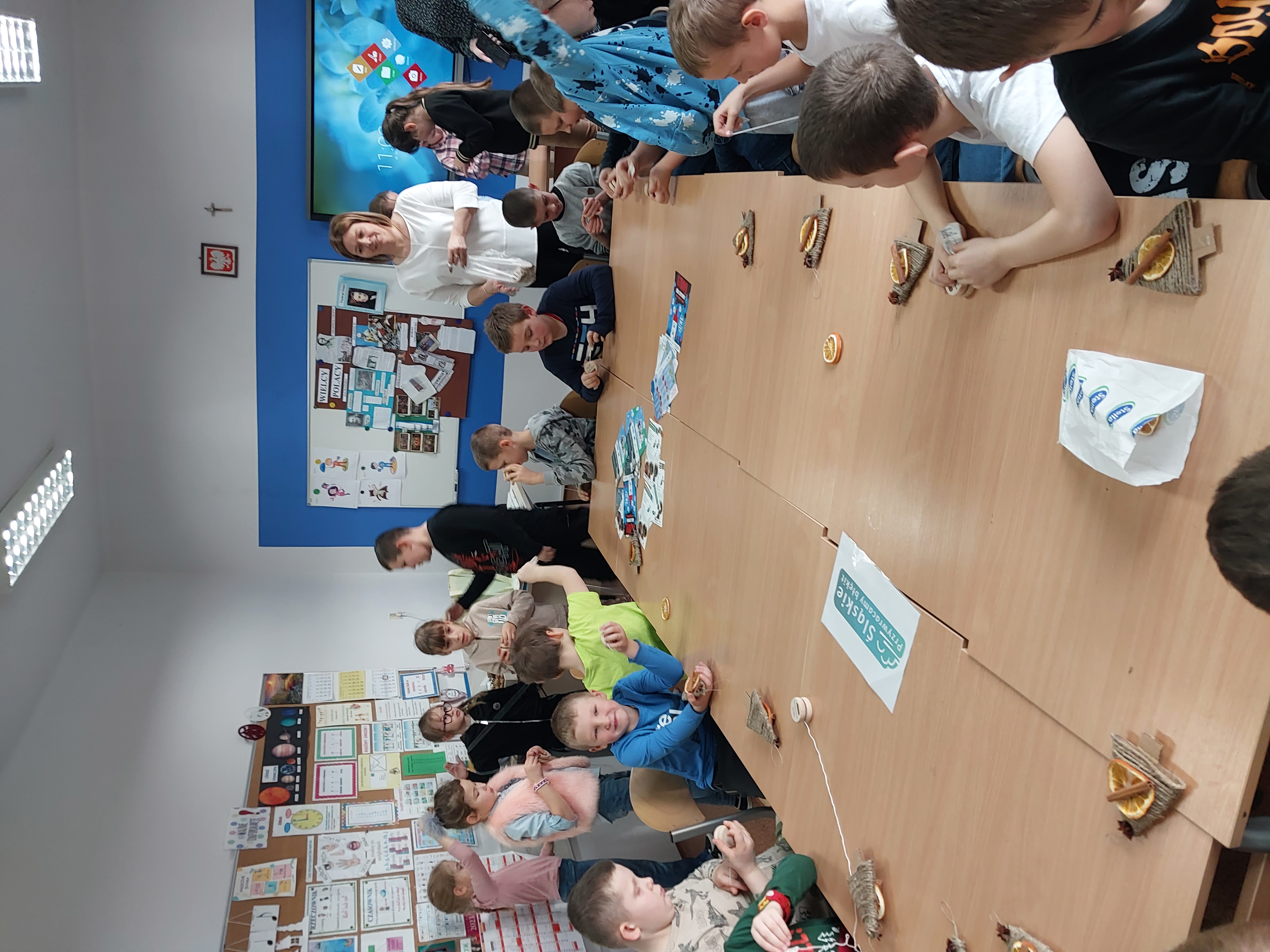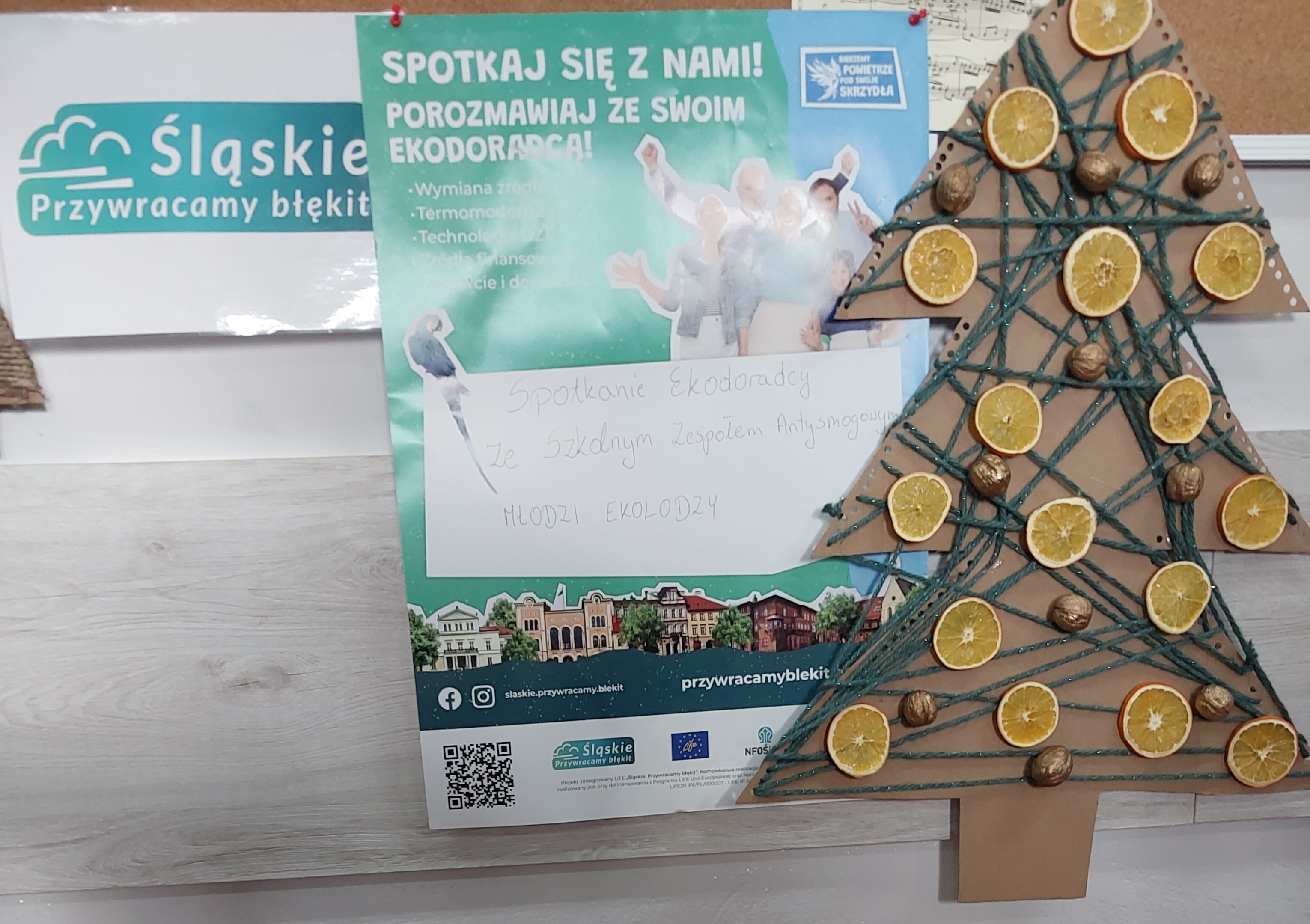 On December 15, 2023, a meeting took place with the School Anti-Smog Team "Young Ecologists" and Iwona Gębka, the eco-manager of the Żarnowiec Municipality. The children familiarized themselves with the LIFE project "Silesia. Blue Sky Restored," its goals, and scope of operation. It also served as the basis for discussions and organizing actions to create ecological Christmas decorations.