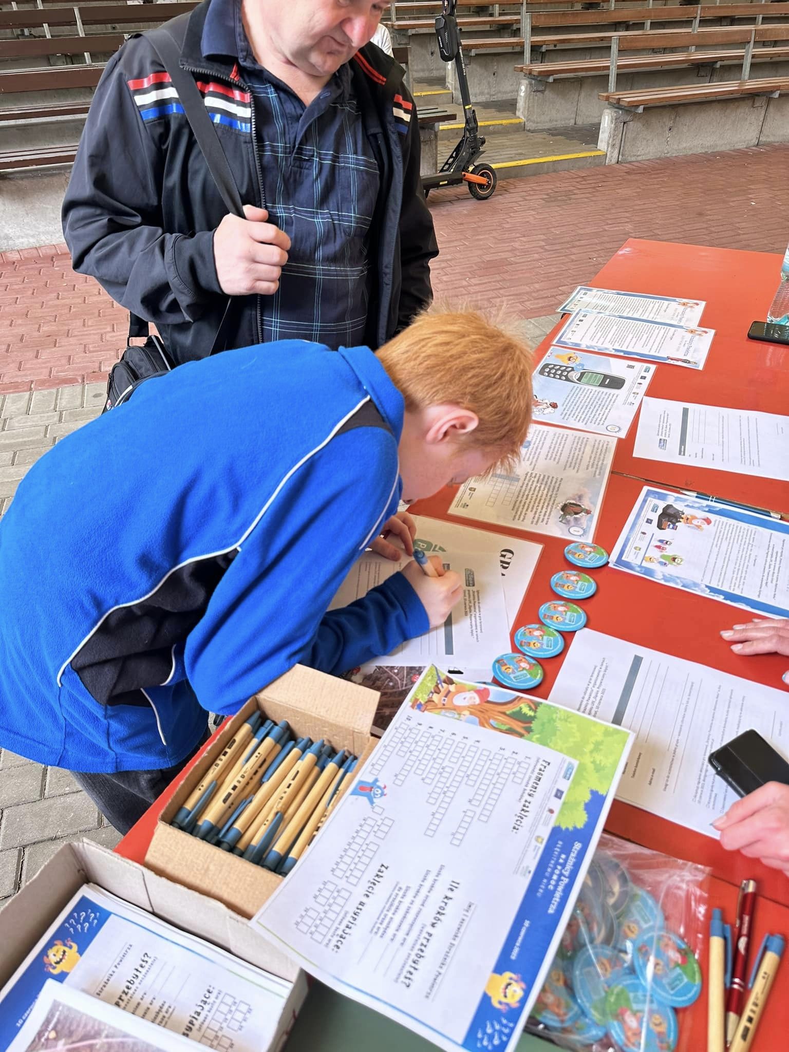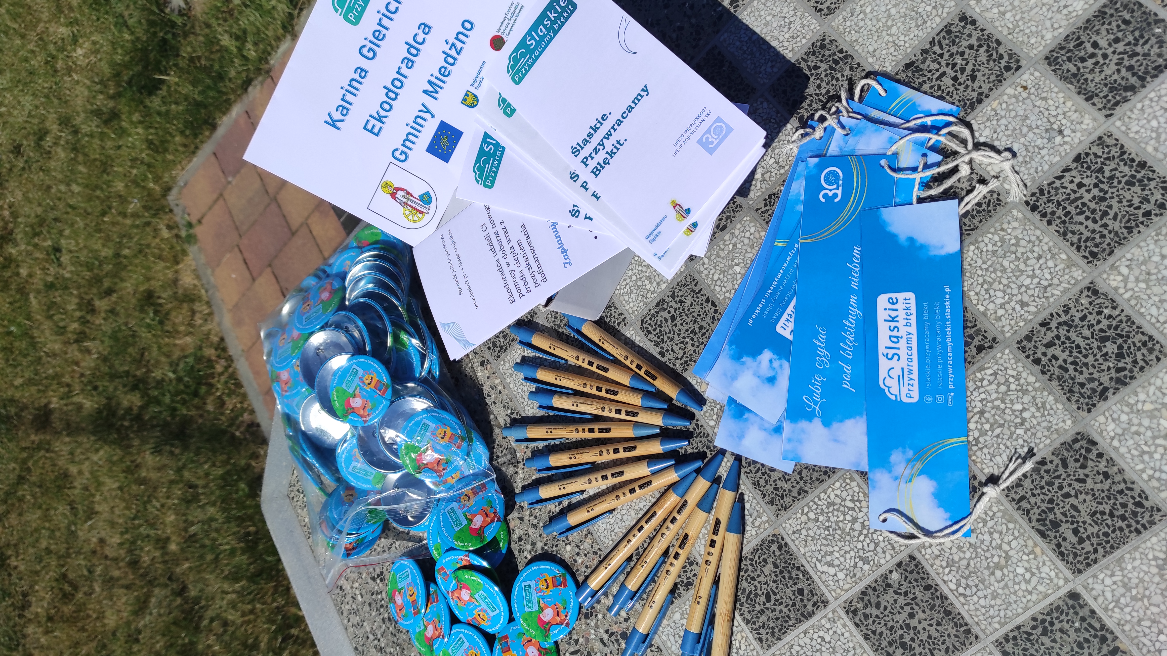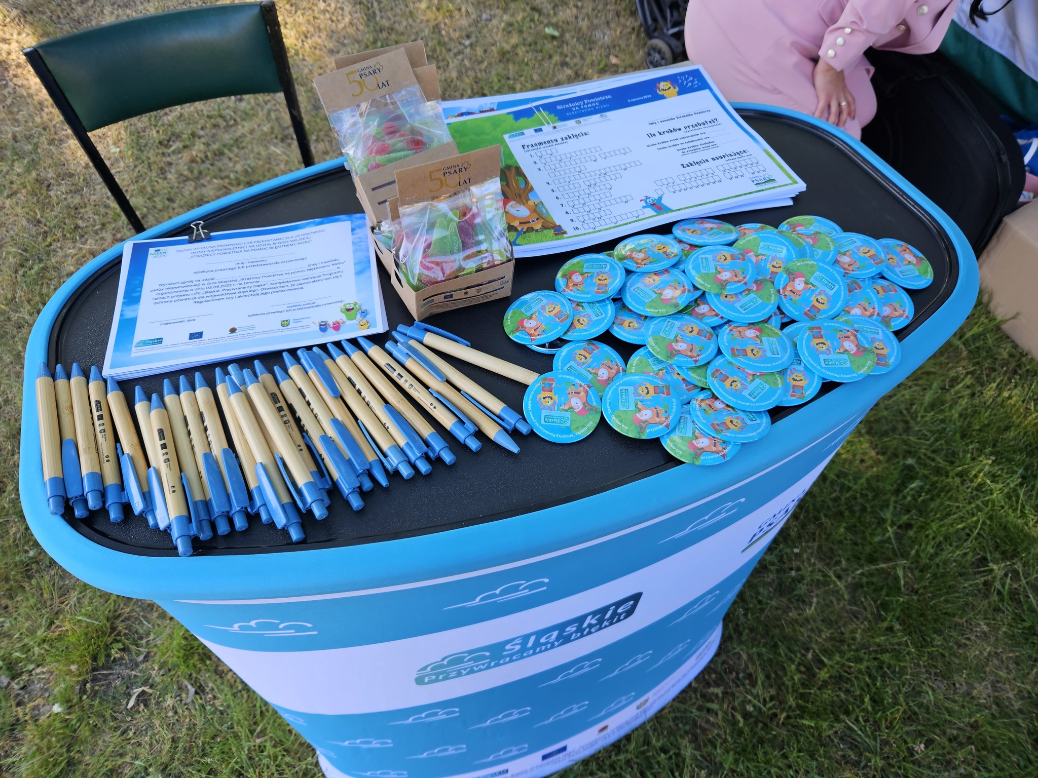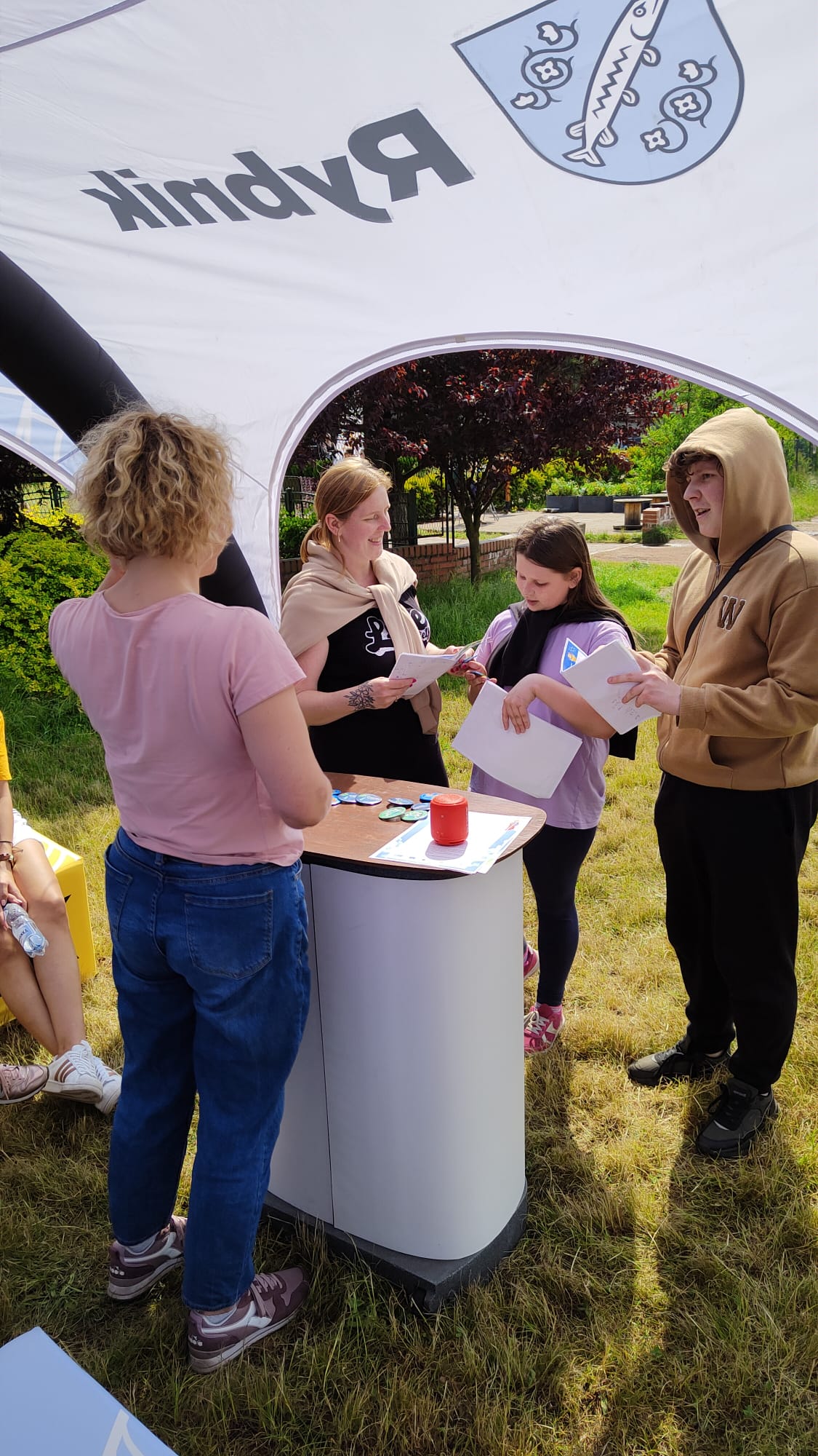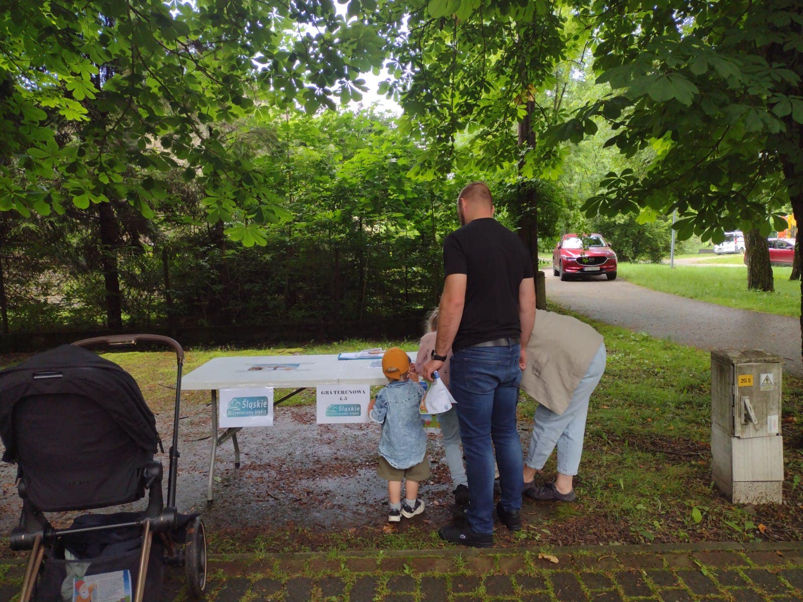 During the Municipal Children's Day in Psary, among numerous attractions for the youngest participants, a field game organized in the Żurawiniec Park garnered significant interest. Several dozen families took part in it. Each participant received a sweet reward and a commemorative pen from the eco-manager, along with a grateful title of "Guardian of the Blue Sky" button.