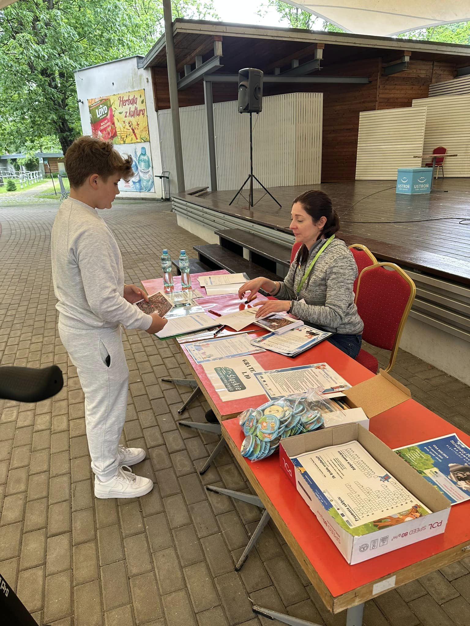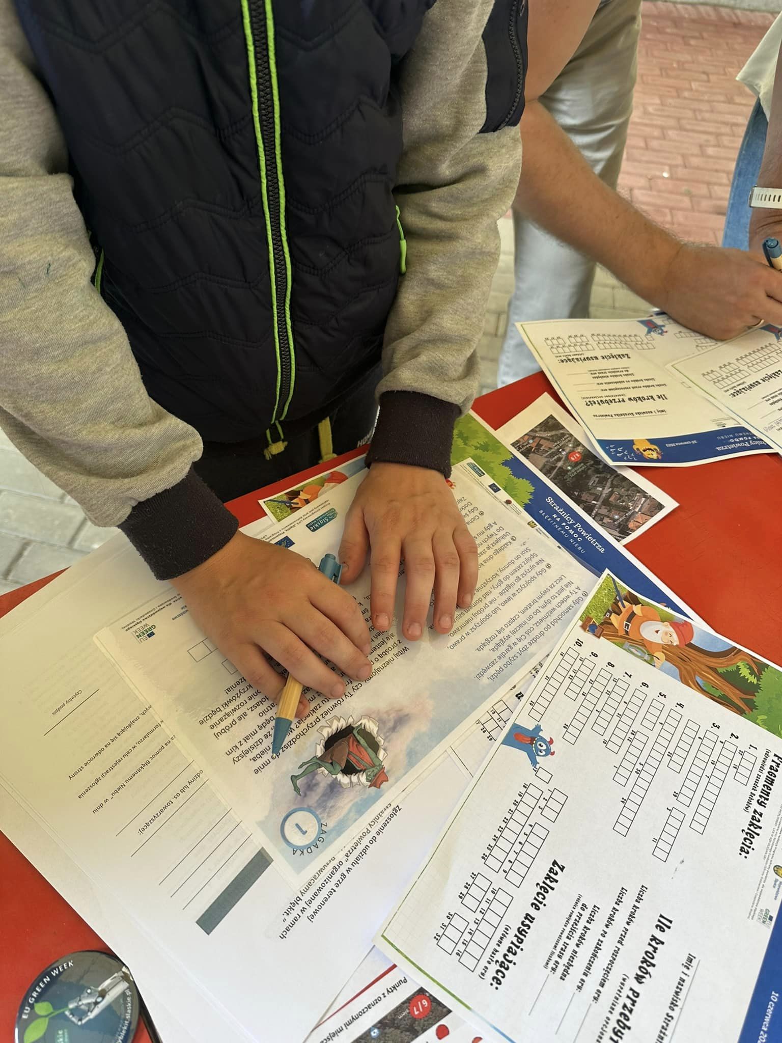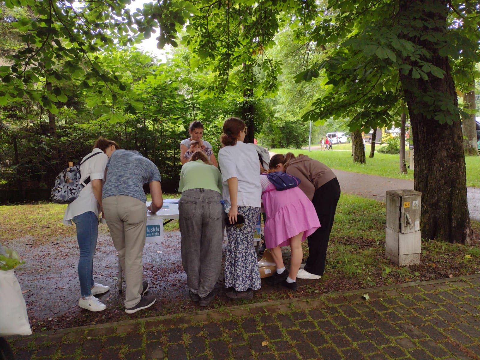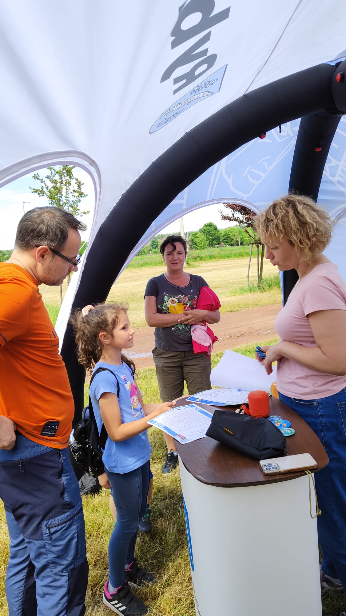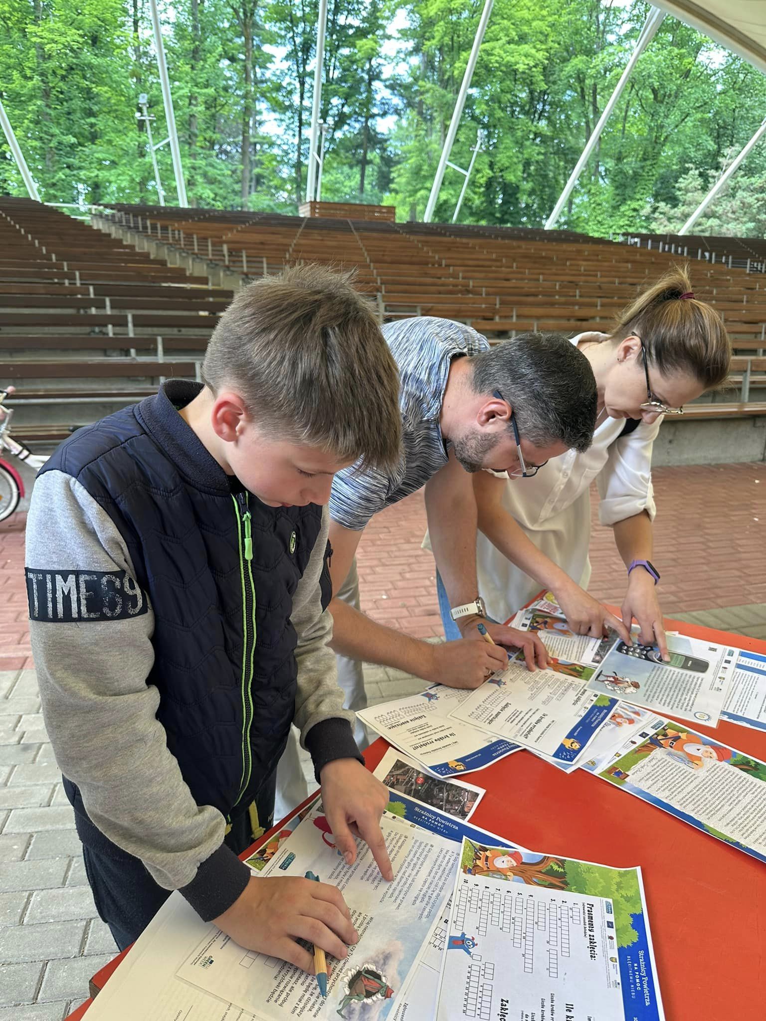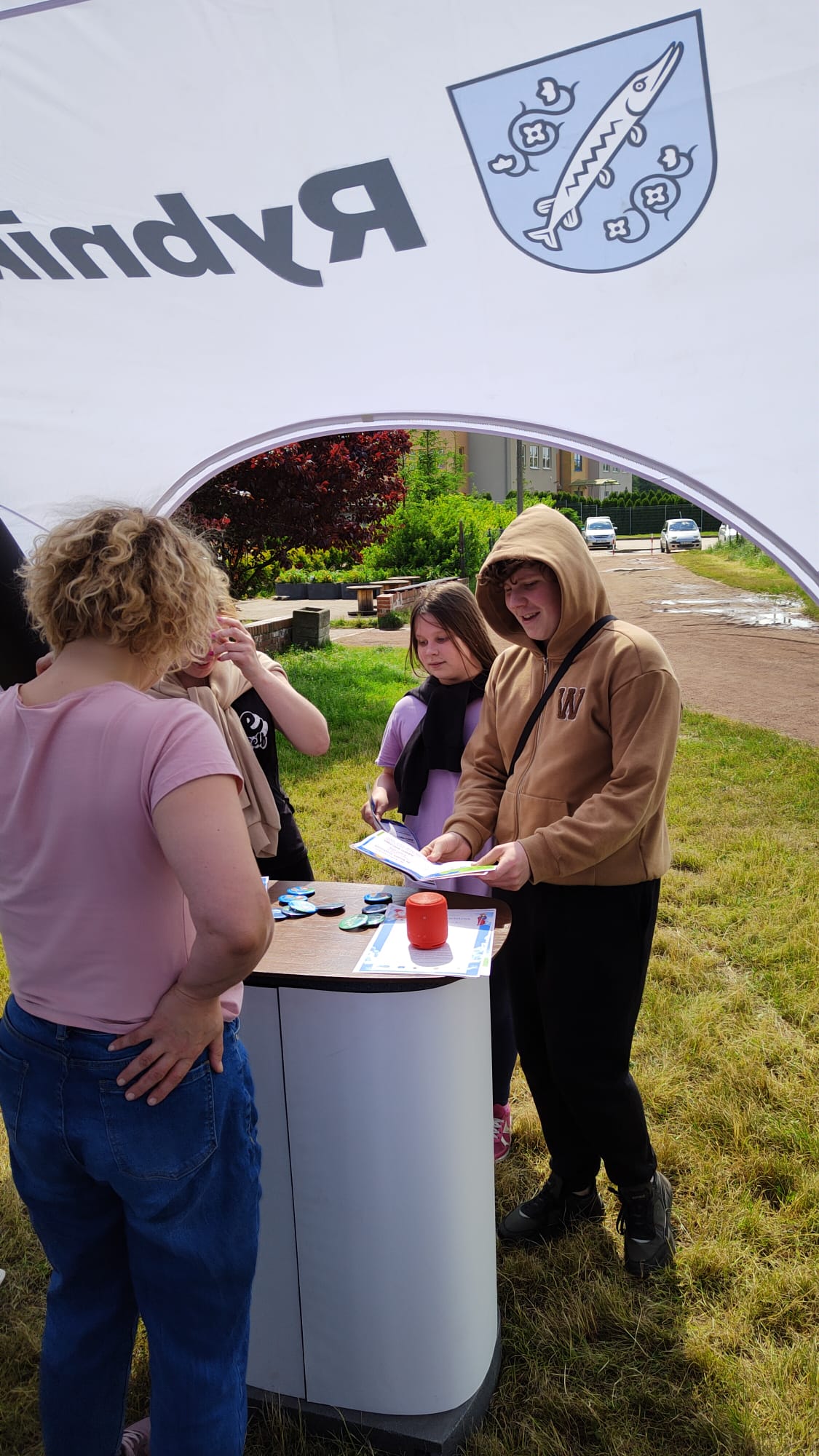 During the Municipal Children's Day in Psary, among numerous attractions for the youngest participants, a field game organized in the Żurawiniec Park garnered significant interest. Several dozen families took part in it. Each participant received a sweet reward and a commemorative pen from the eco-manager, along with a grateful title of "Guardian of the Blue Sky" button.