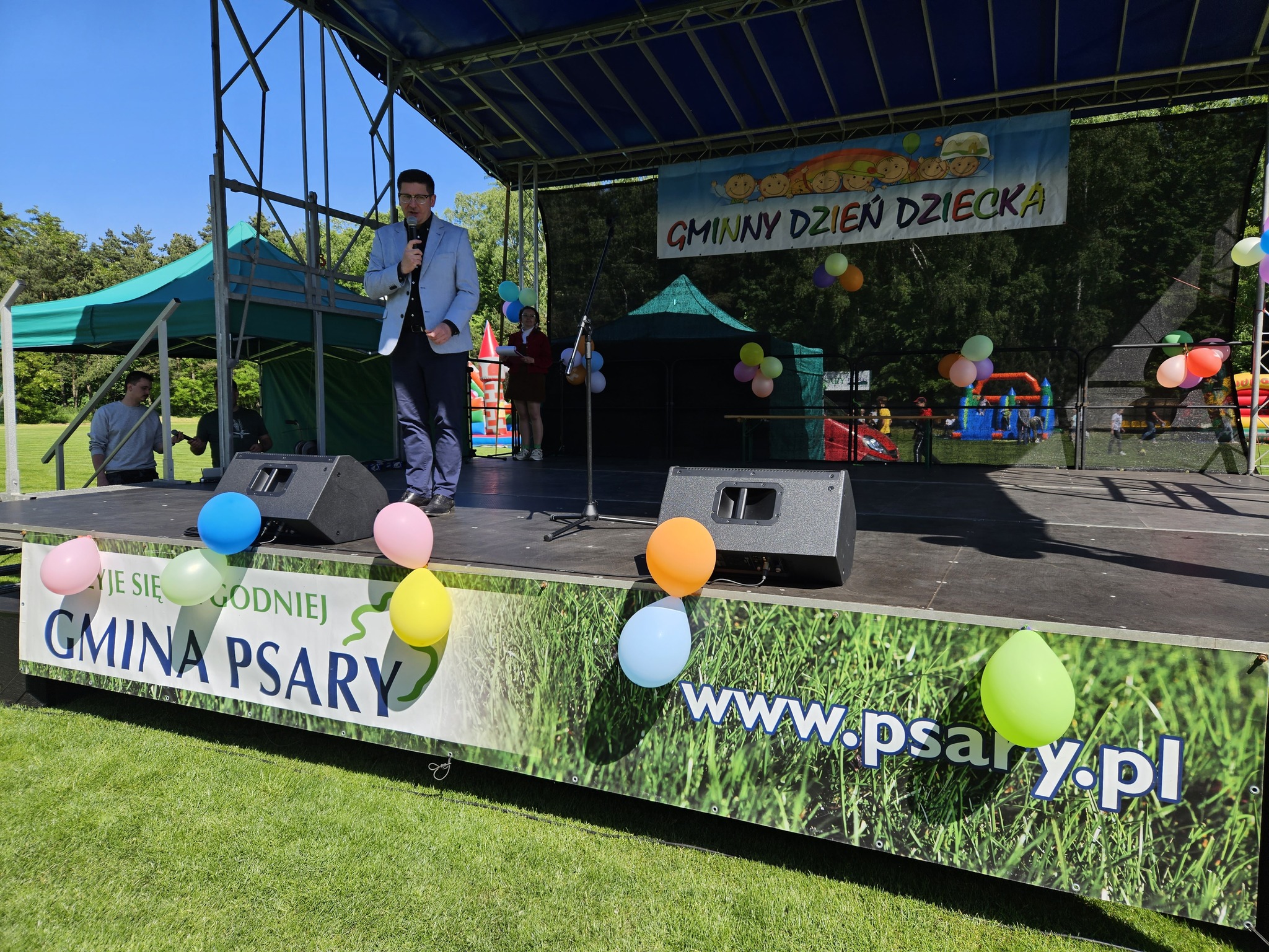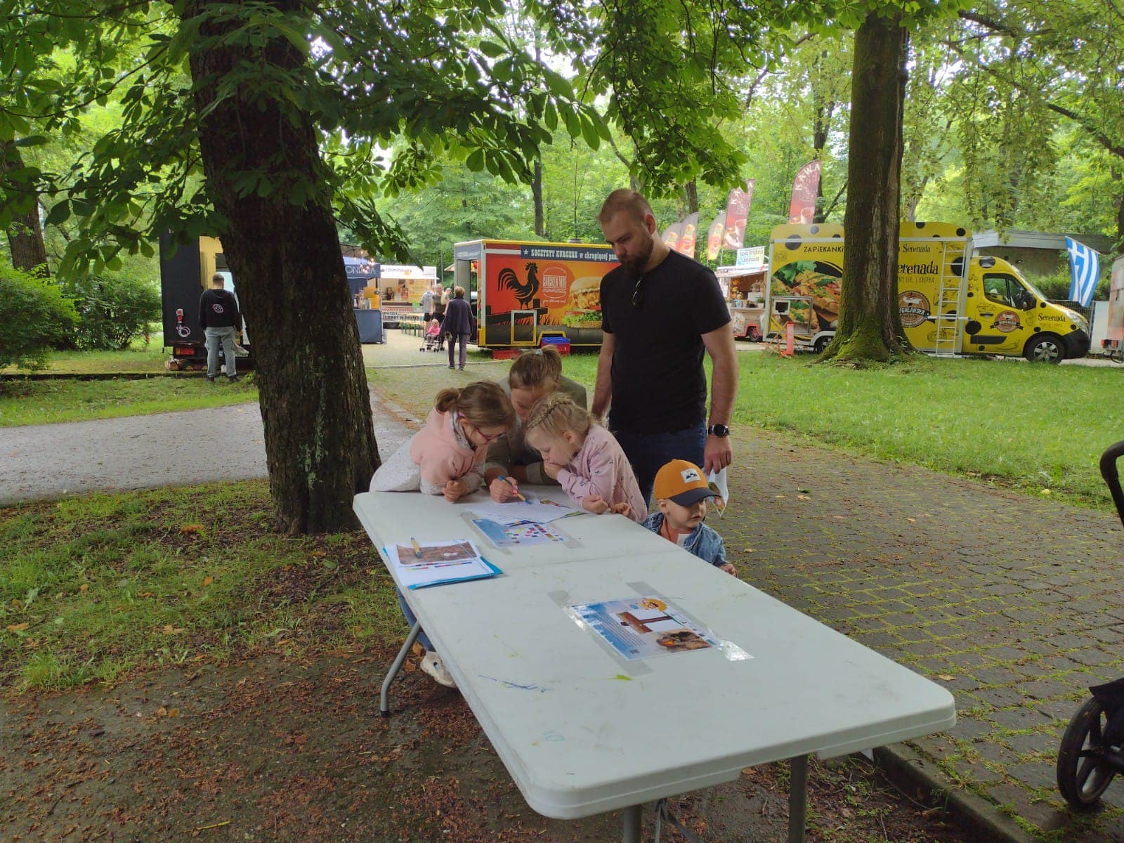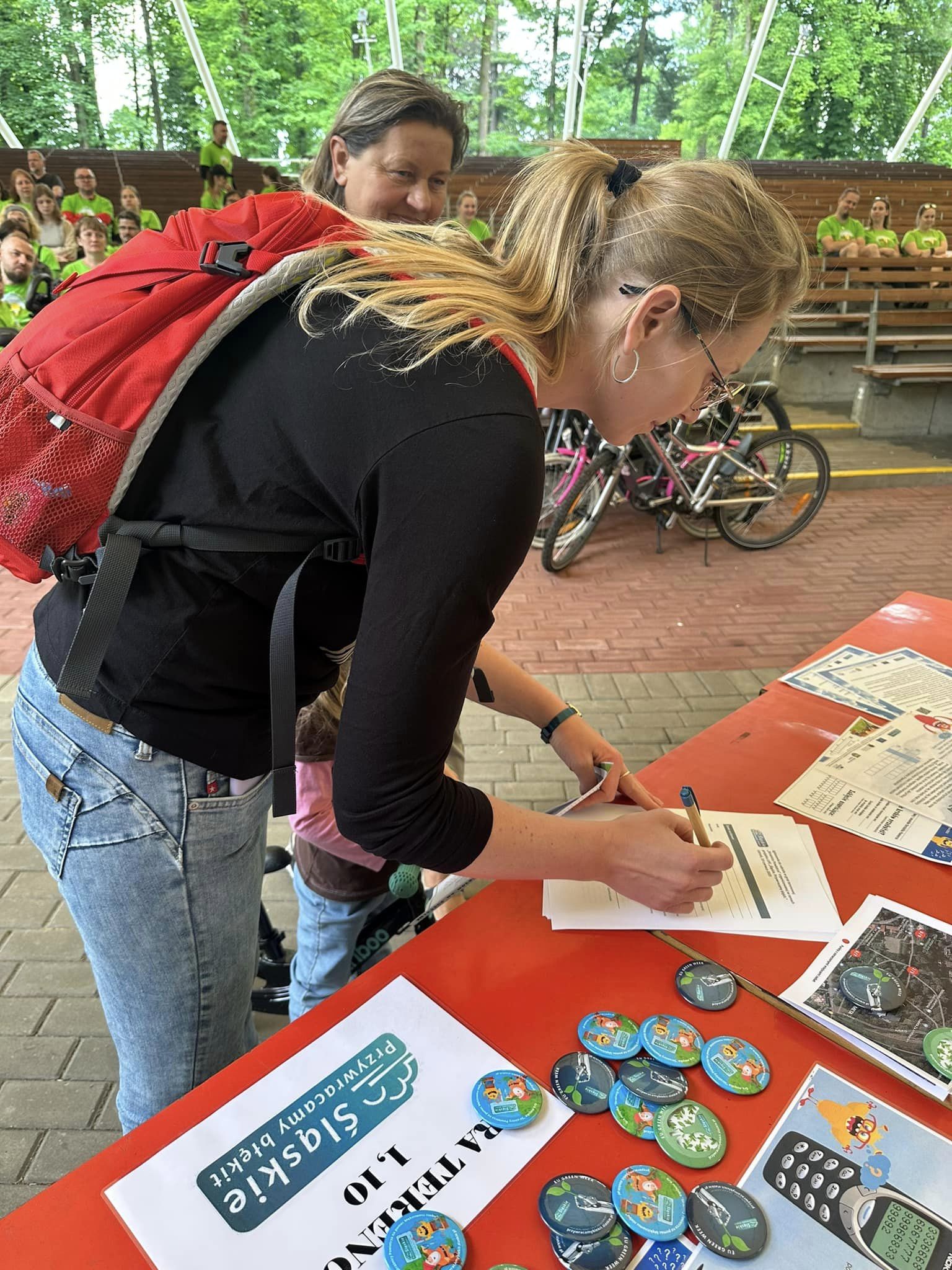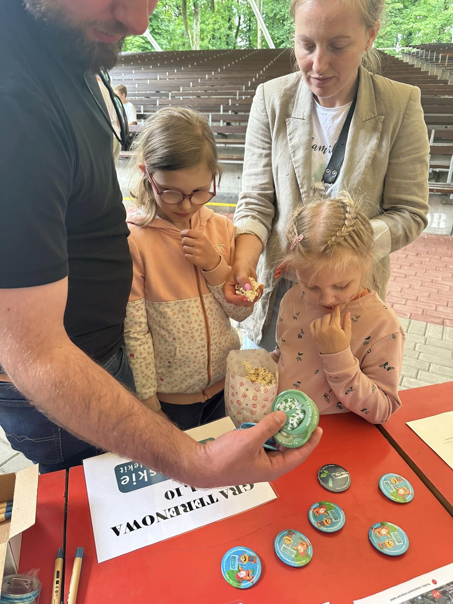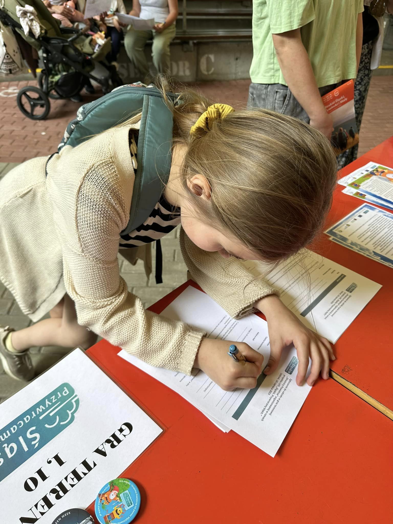 During the Municipal Children's Day in Psary, among numerous attractions for the youngest participants, a field game organized in the Żurawiniec Park garnered significant interest. Several dozen families took part in it. Each participant received a sweet reward and a commemorative pen from the eco-manager, along with a grateful title of "Guardian of the Blue Sky" button.