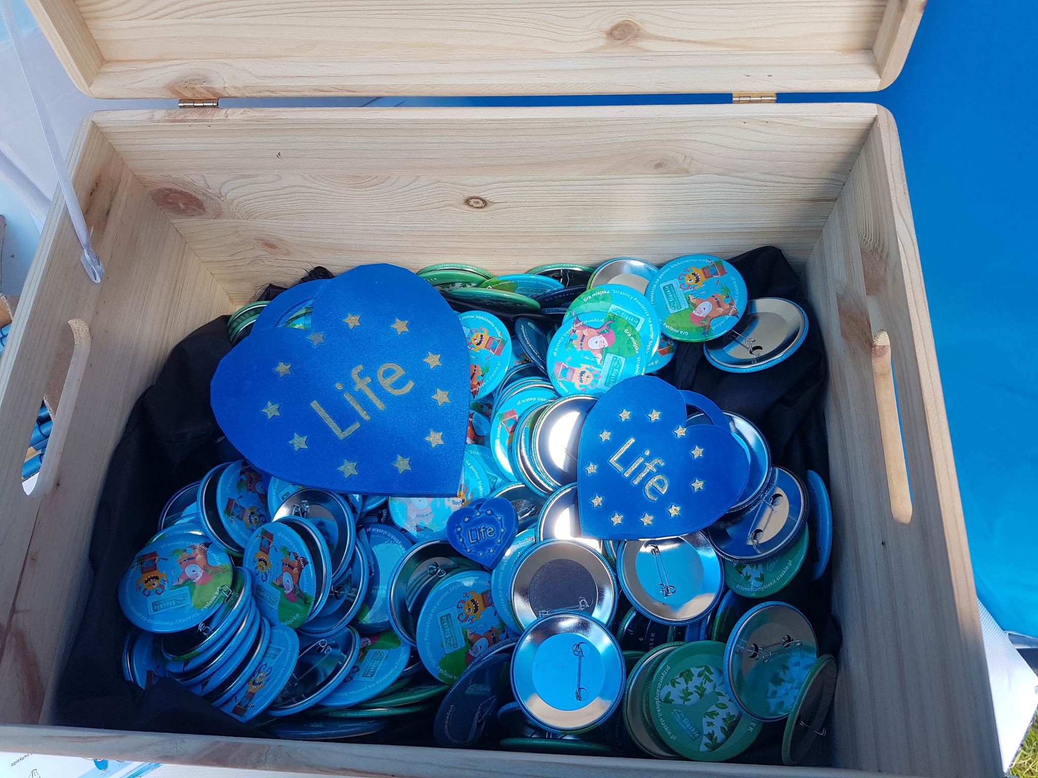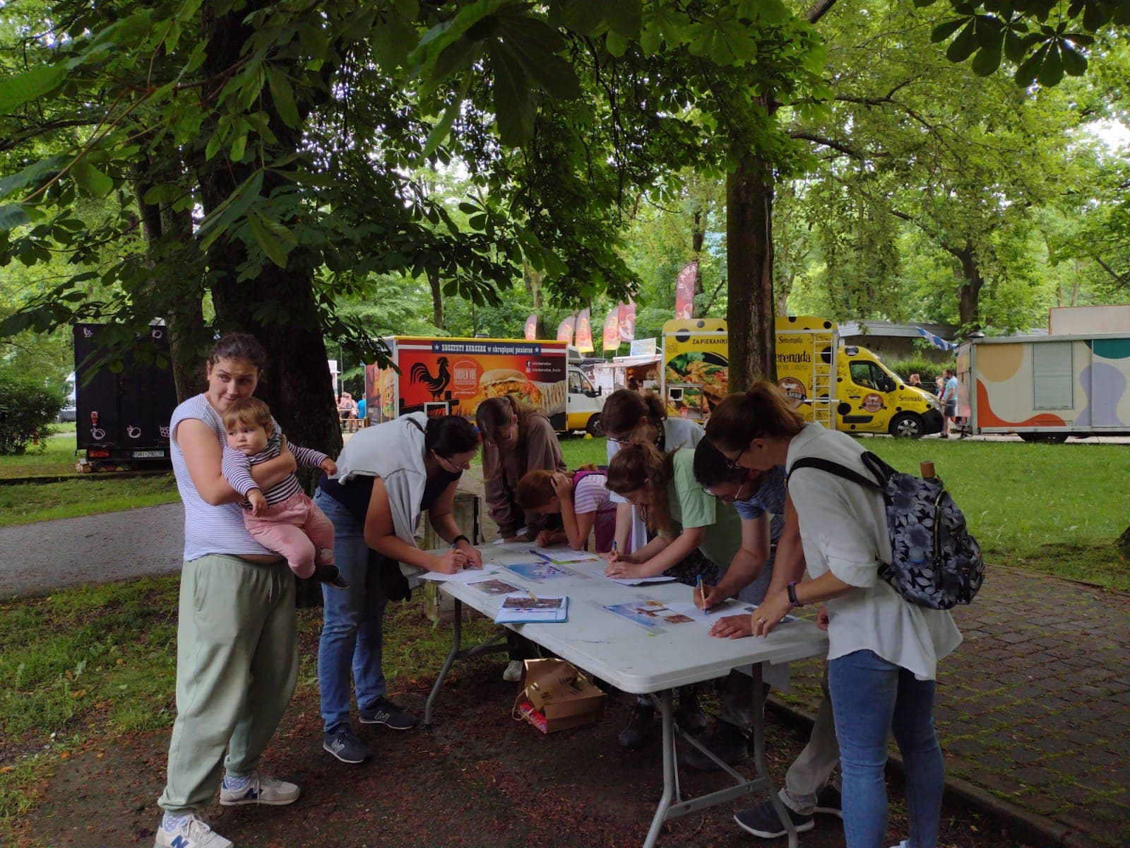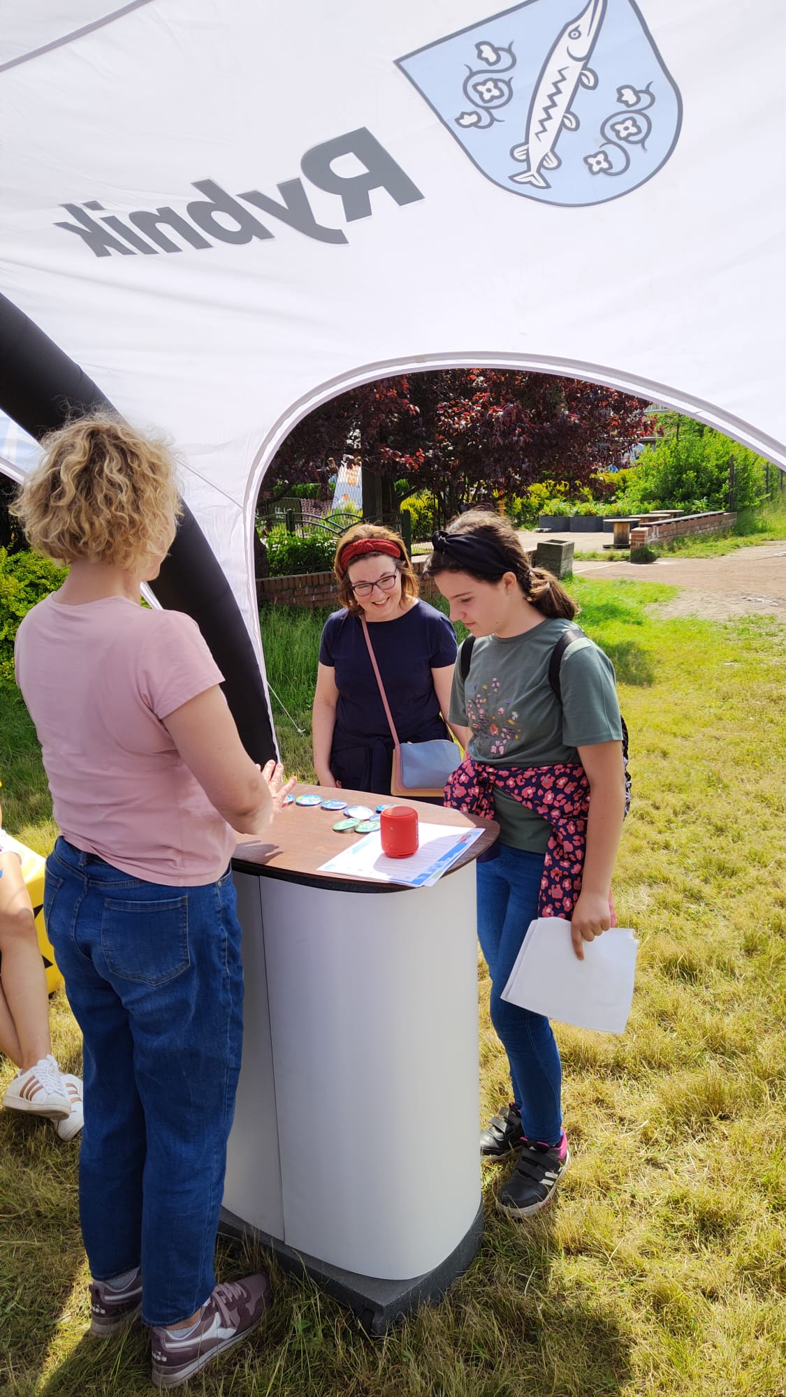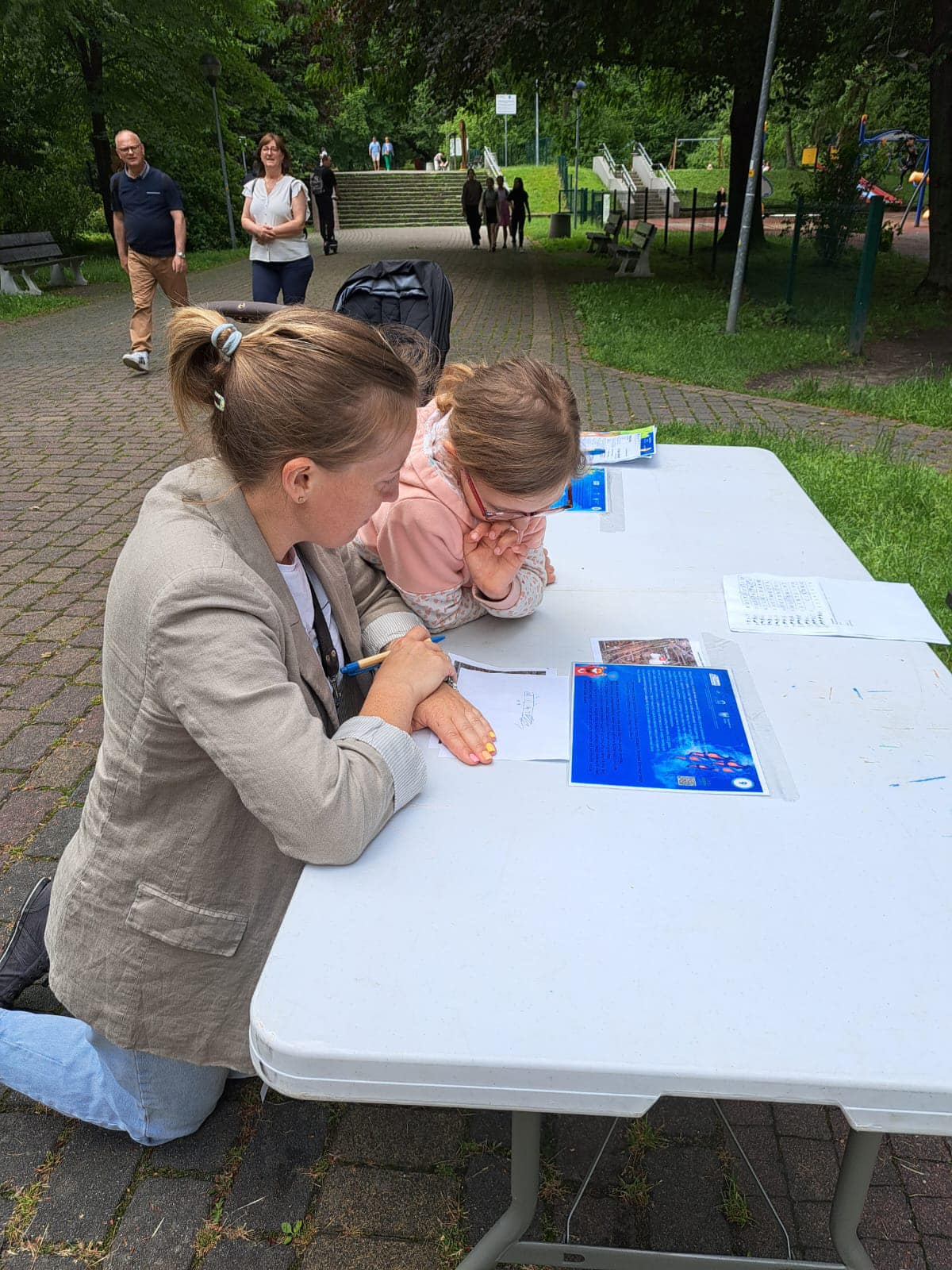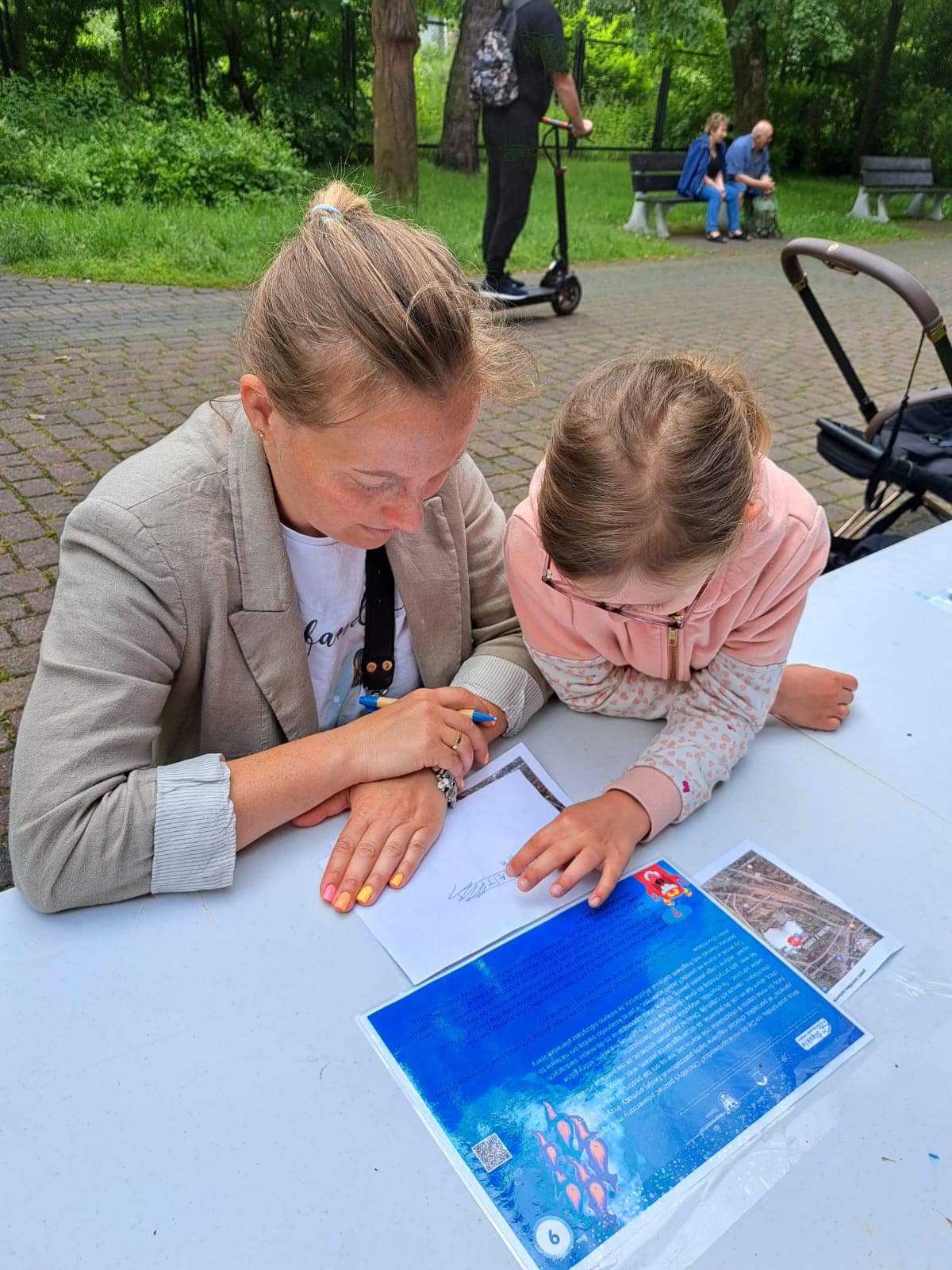 During the Municipal Children's Day in Psary, among numerous attractions for the youngest participants, a field game organized in the Żurawiniec Park garnered significant interest. Several dozen families took part in it. Each participant received a sweet reward and a commemorative pen from the eco-manager, along with a grateful title of "Guardian of the Blue Sky" button.