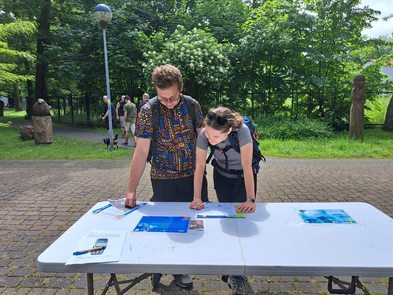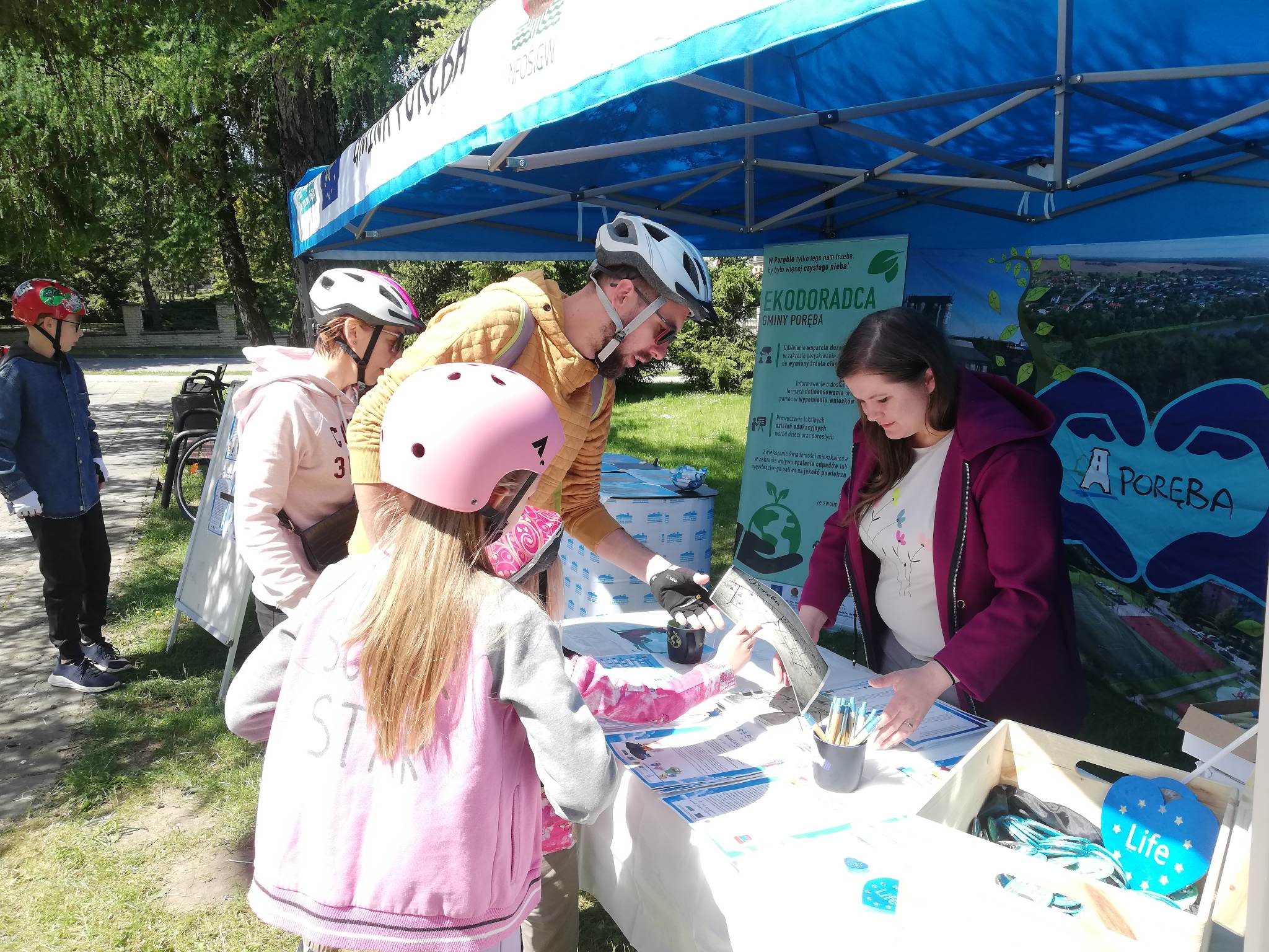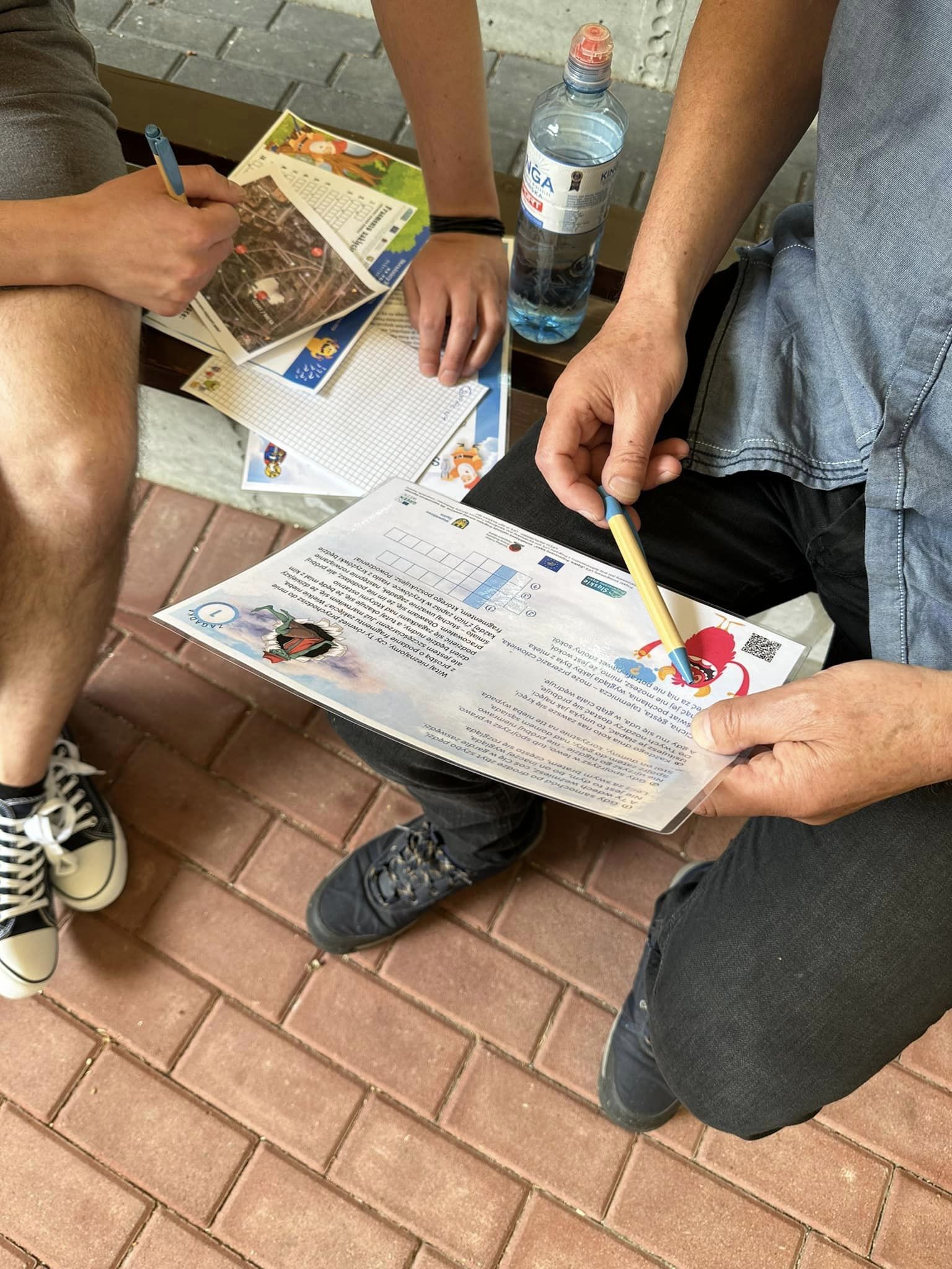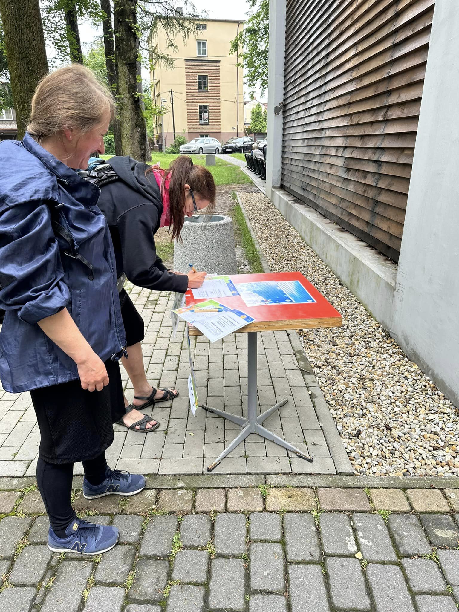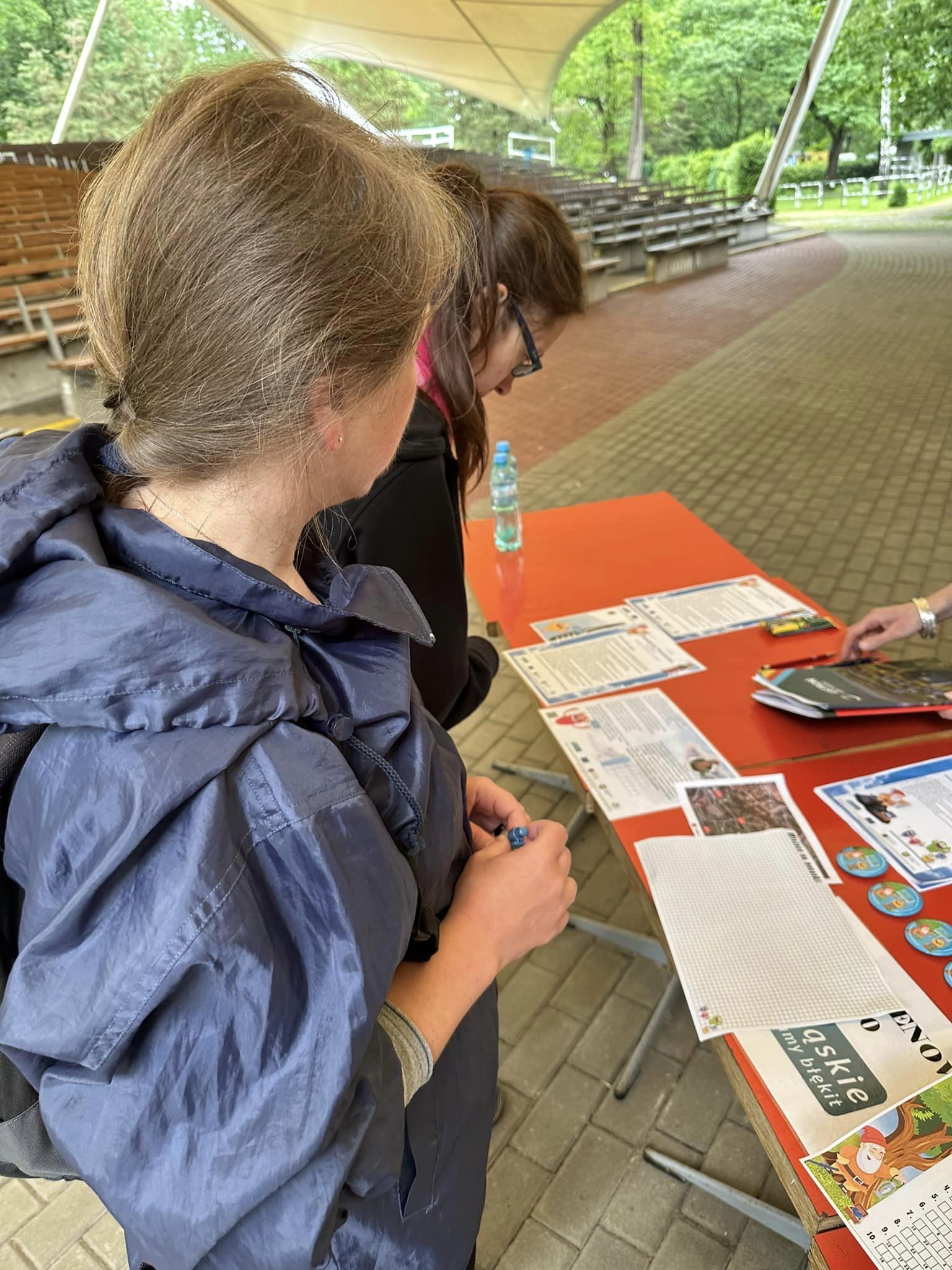 The starting and ending point of the game in Poręba was located near the building of the Municipal Cultural Center, where the finale of the "Eco Poręba" festival was taking place simultaneously. The game route was approximately 2 km long and led around characteristic locations in the city. It included the City Hall, the municipal stadium, the city park, and the nearby church. Many residents of Poręba participated in the event, mainly families with children, but the game also attracted interest from people of all age groups. The participants successfully completed the tasks presented to them, and upon finishing the game, they received gifts such as buttons, mugs, or board games.