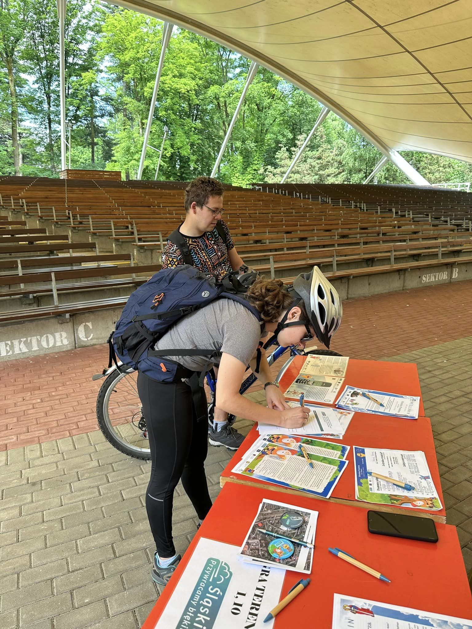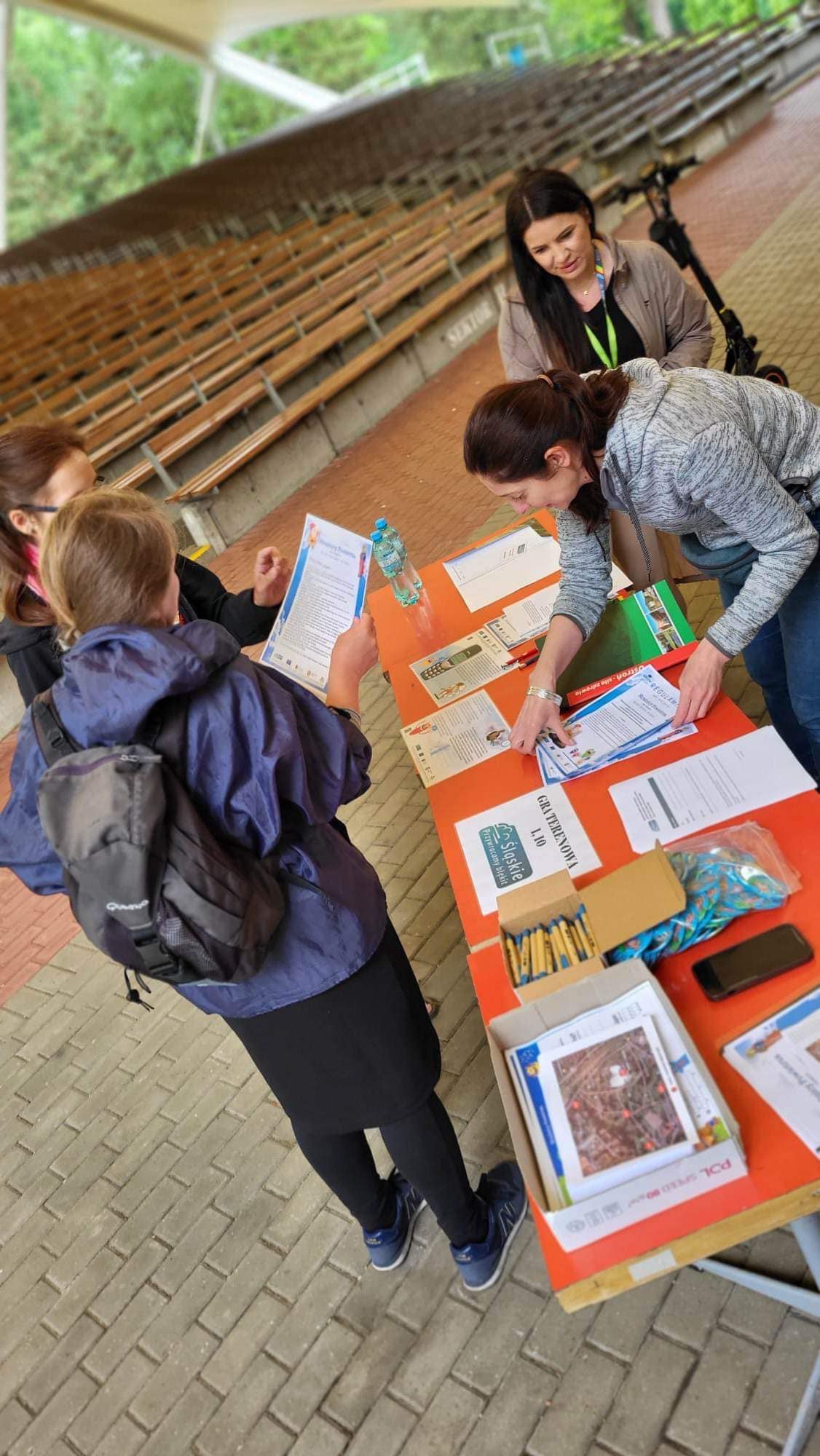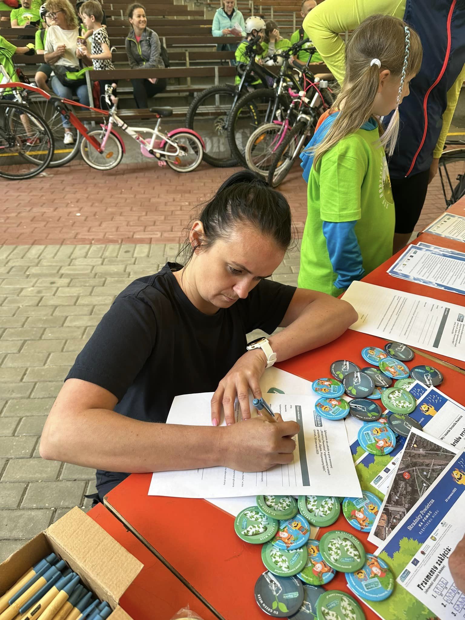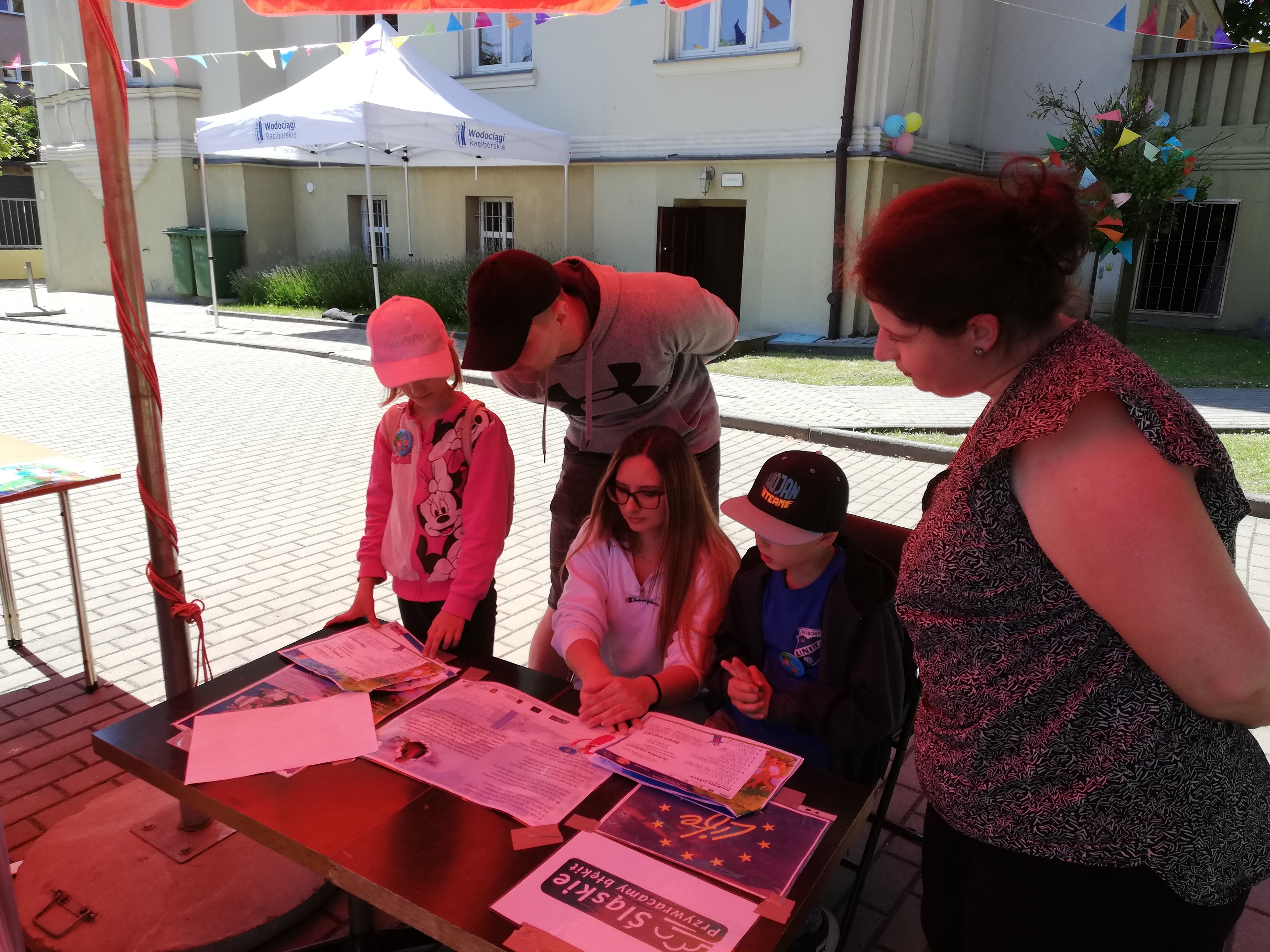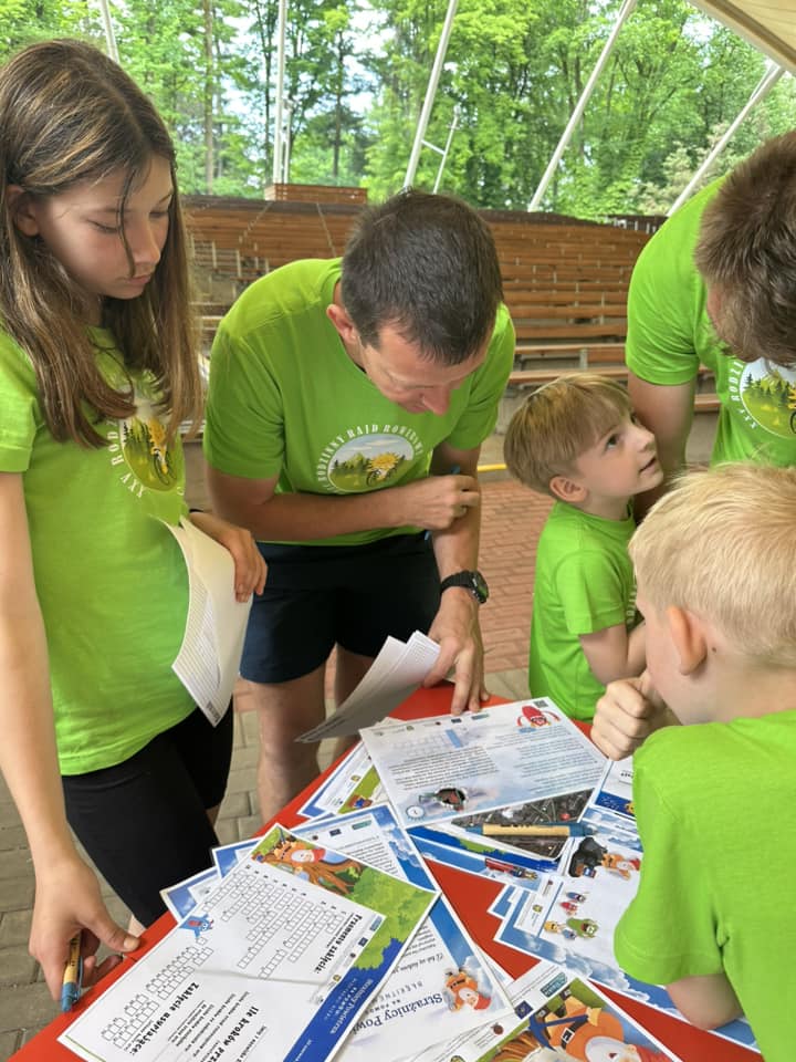 The starting and ending point of the game in Poręba was located near the building of the Municipal Cultural Center, where the finale of the "Eco Poręba" festival was taking place simultaneously. The game route was approximately 2 km long and led around characteristic locations in the city. It included the City Hall, the municipal stadium, the city park, and the nearby church. Many residents of Poręba participated in the event, mainly families with children, but the game also attracted interest from people of all age groups. The participants successfully completed the tasks presented to them, and upon finishing the game, they received gifts such as buttons, mugs, or board games.