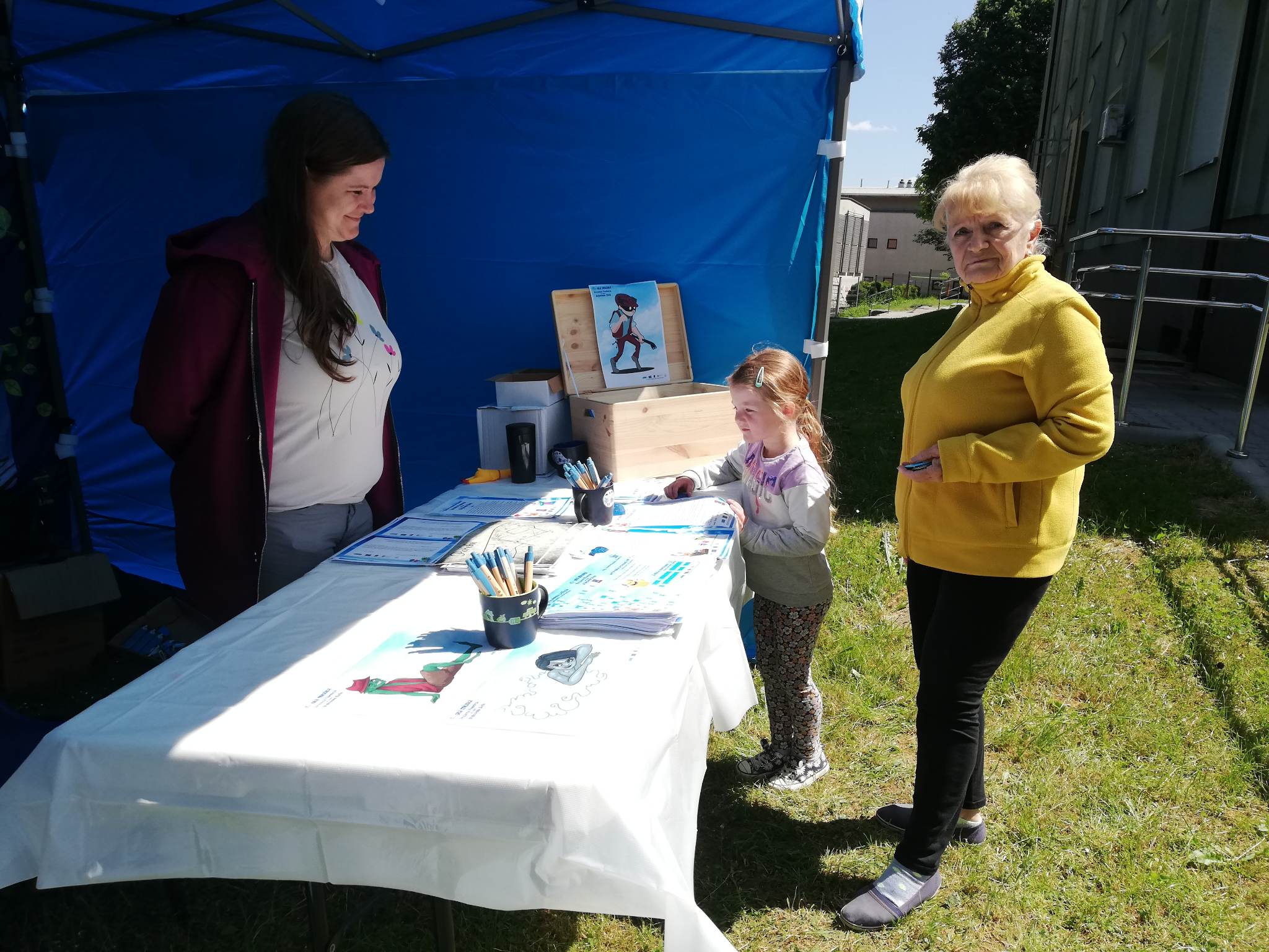 In Racibórz, the letters from Skarbek and Saint Barbara awaited in a unique place - the Ryszard Kincl Municipal and County Public Library, where a booth was prepared by the eco-manager, Zuzanna Poprawka. The bebok riddles were scattered in the Jordanowski Park. All participating children received rewards - buttons, pens, balloons, backpacks with coloring pencils, and coloring books titled "Smog, Our Enemy."