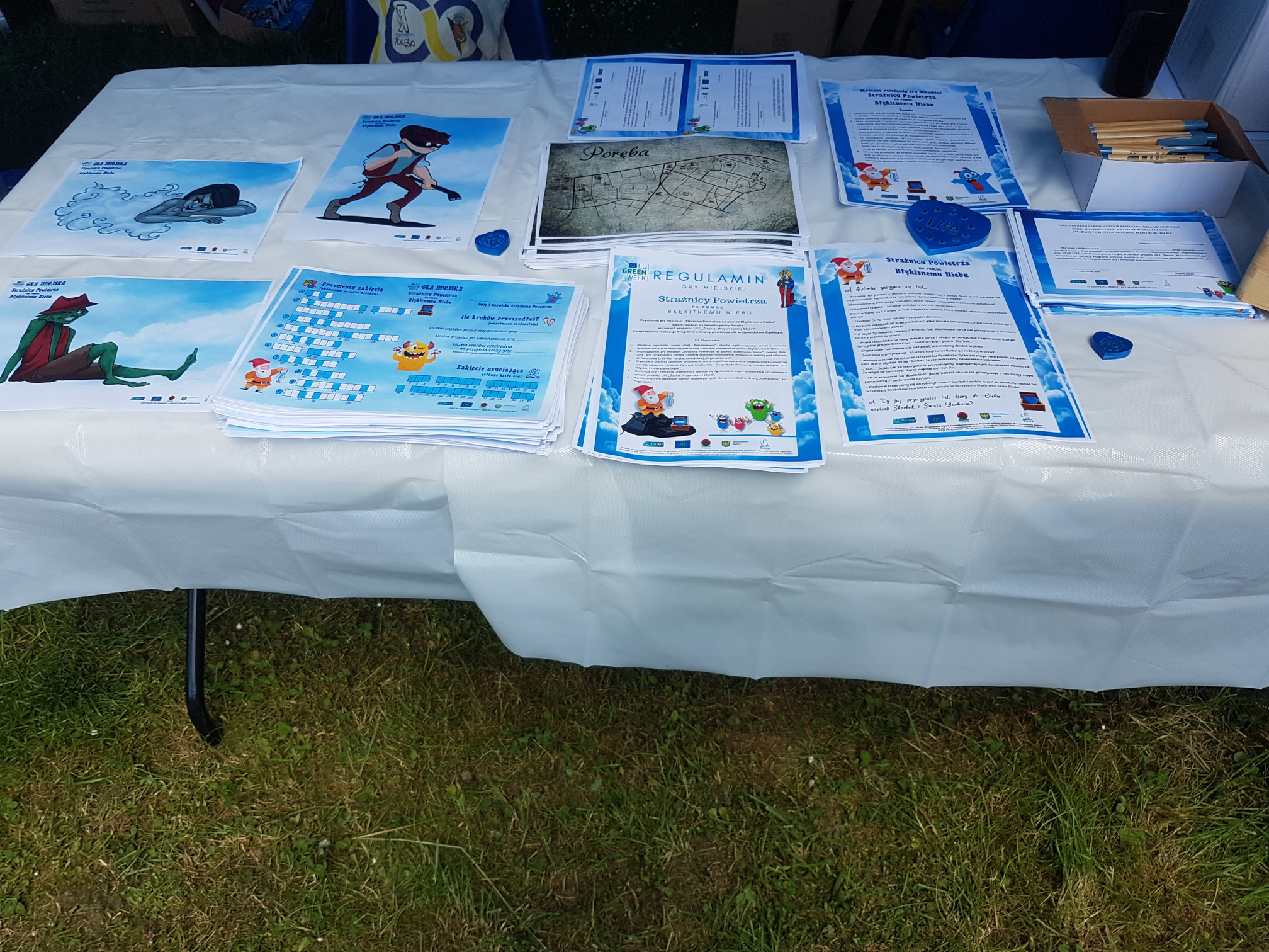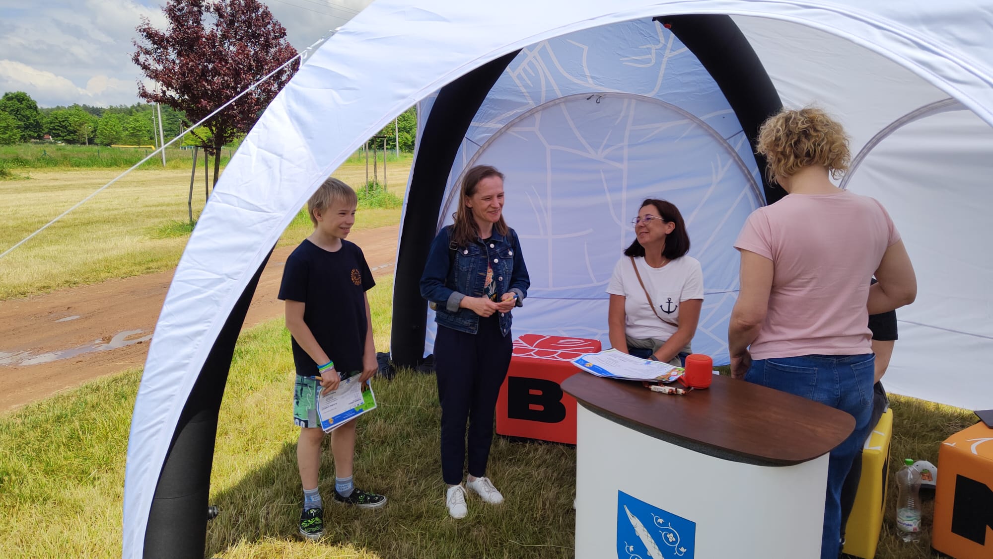 In Miedźno, on the extensive lawns of the municipal square, games and activities with a significant dose of ecological knowledge took place. Thanks to the eco-manager, dealing with air pollution problems and solving riddles were not overly difficult. The game involved entire families as well as solitary Air Guardians.