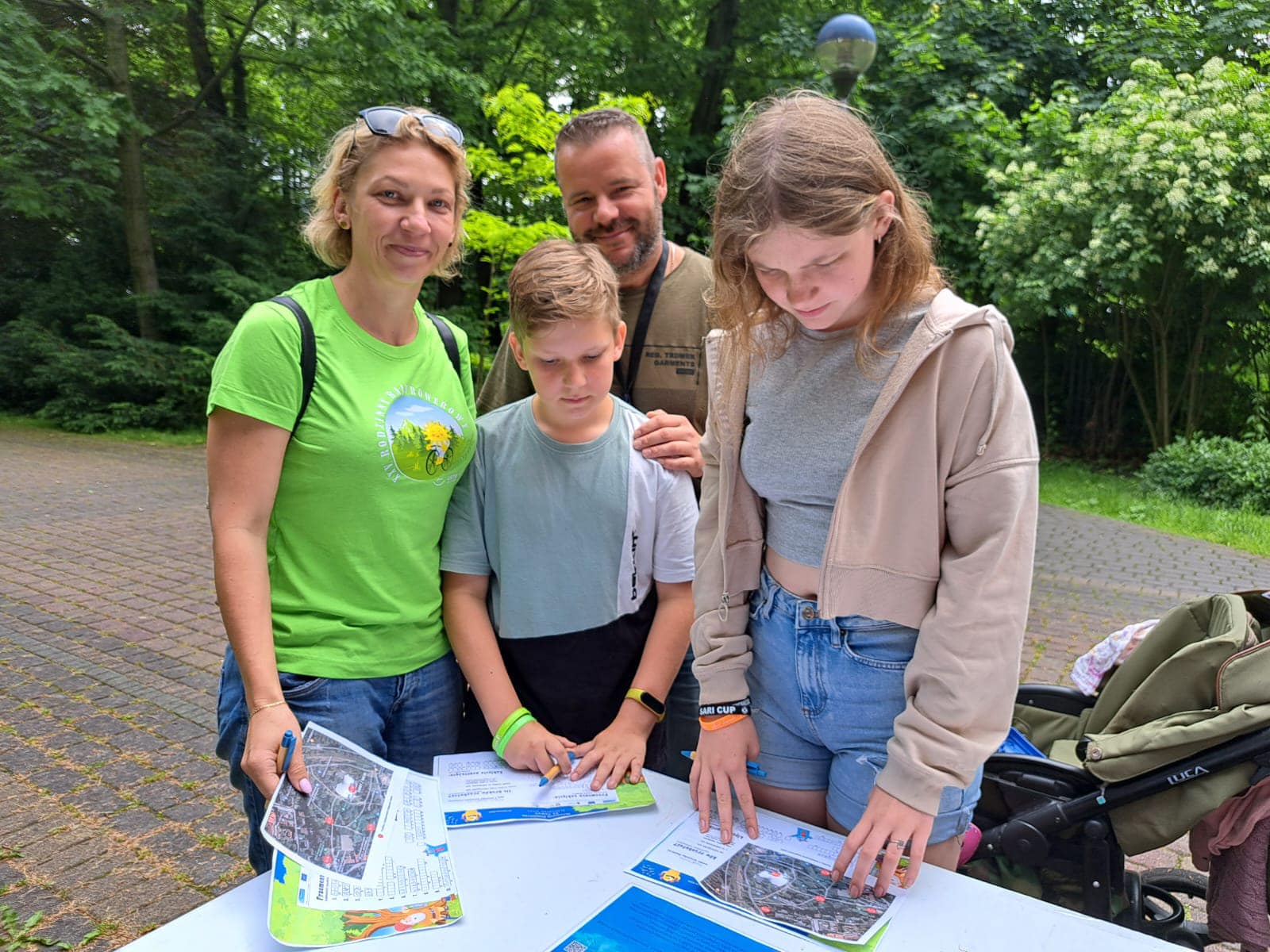 Families from Ustroń, along with beboks, took over the territory of the Spa Park. In the Ustroń Amphitheatre, participants received a letter from Skarbek and Saint Barbara before setting off on a journey to tackle challenging riddles and recover the Blue Heart of Silesia. The organization of the event was supported by colleagues from the Department of Environmental Protection and Agriculture of the City Hall, including Chief Officer Monika Maksymczak.