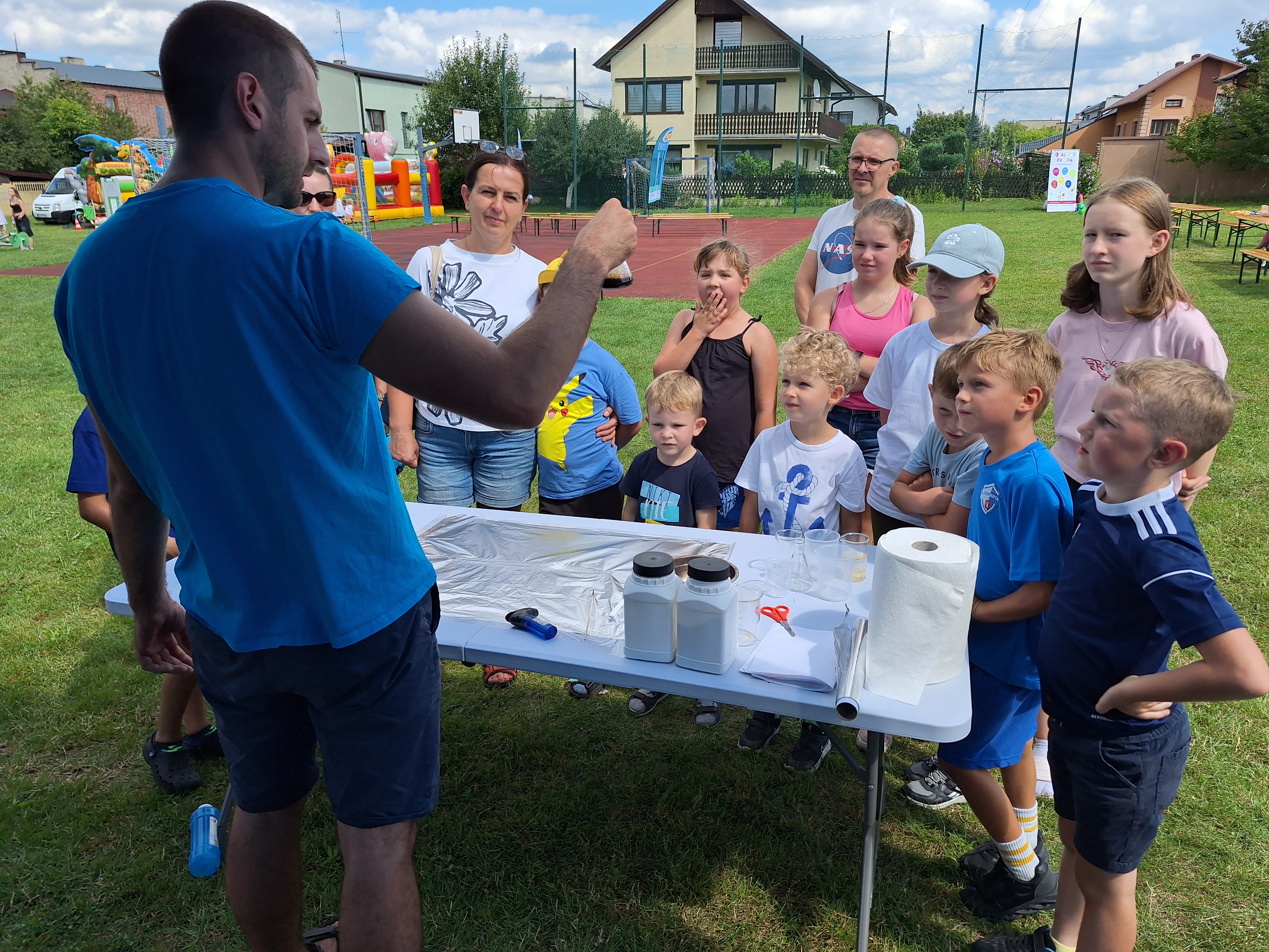 Equally exciting was the mobile experimental laboratory led by Cezary Olchawa. His chemical demonstrations literally ignited the participants' imaginations! The experiments, full of colors, flashes, and special effects, drew crowds of curious onlookers. Each demonstration was not only a spectacle but also an opportunity for learning – you could see firsthand how science becomes a fascinating adventure. It was a true highlight of the picnic that warmed the atmosphere both literally and figuratively!