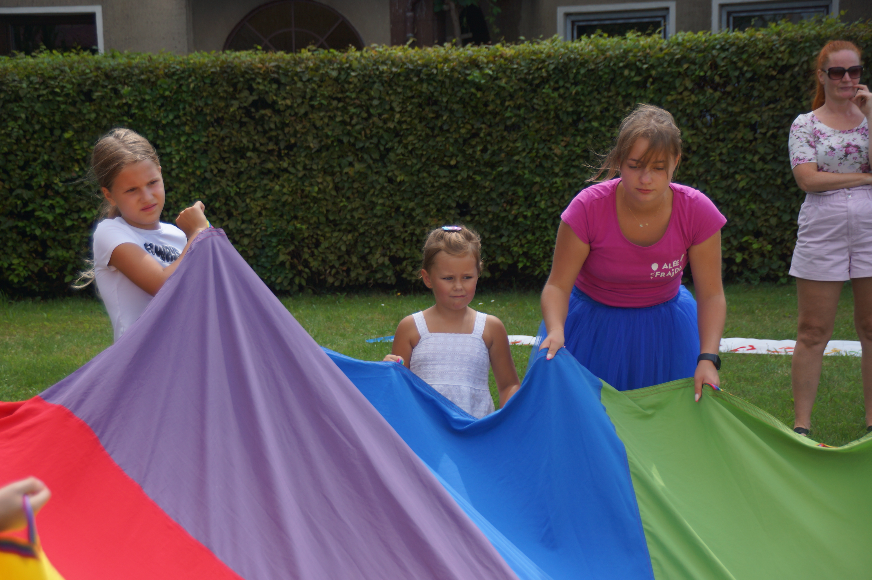 Children also had the chance to let off steam on the inflatables, which were extremely popular. Jumping, sliding, and laughter were the order of the day, while parents could relax in the fresh air, watching their children play to their heart's content. Fantastic entertainment was also provided by the movement animations prepared by the indispensable AleeFrajda team. Giant soap bubbles, races, and movement games attracted many children, who joyfully participated in every activity. Tug-of-war, races, and other games ensured plenty of exercise and laughter, with boredom being strictly off-limits!