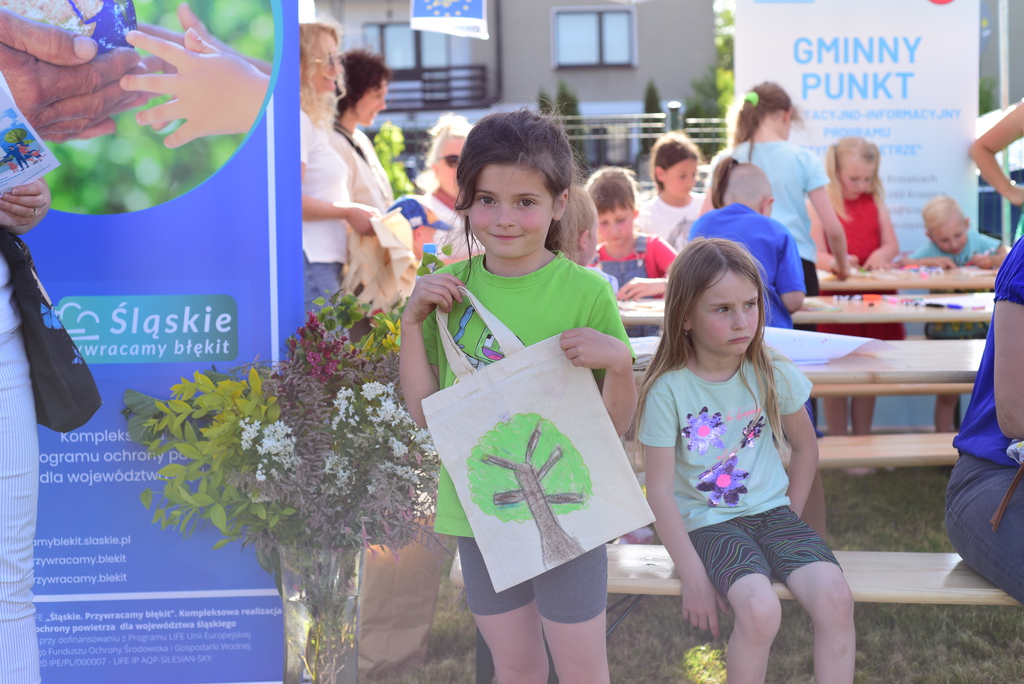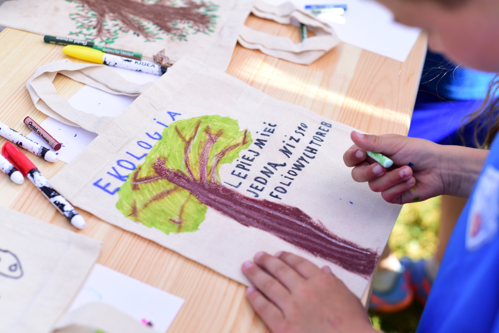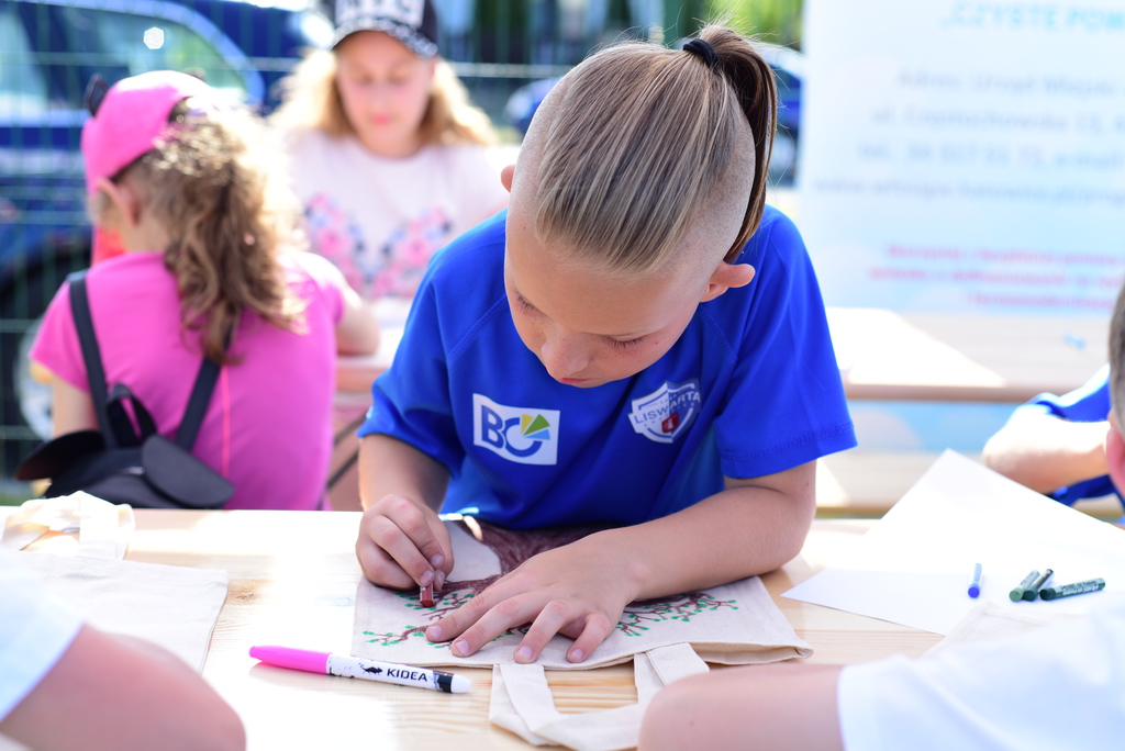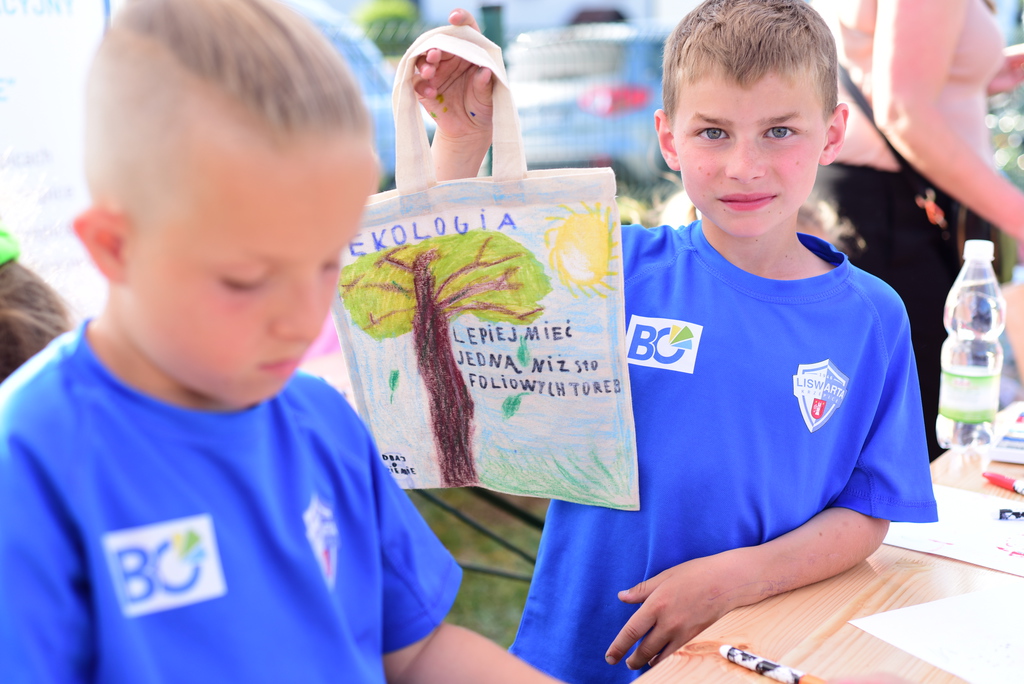 The Mayor of Krzepice, Mr. Krystian Kotynia, was present at the stand, supporting children in creating ecological motifs on the bags.