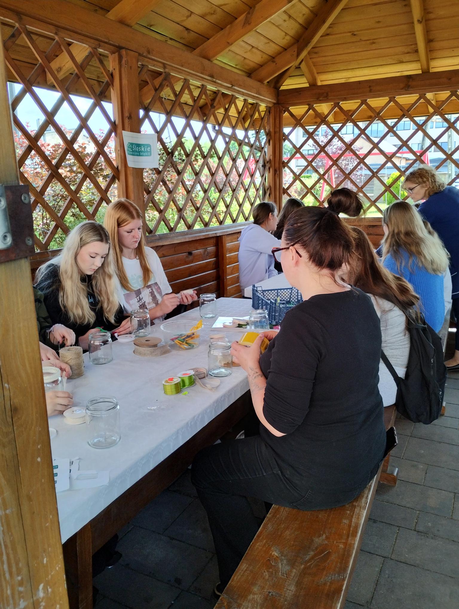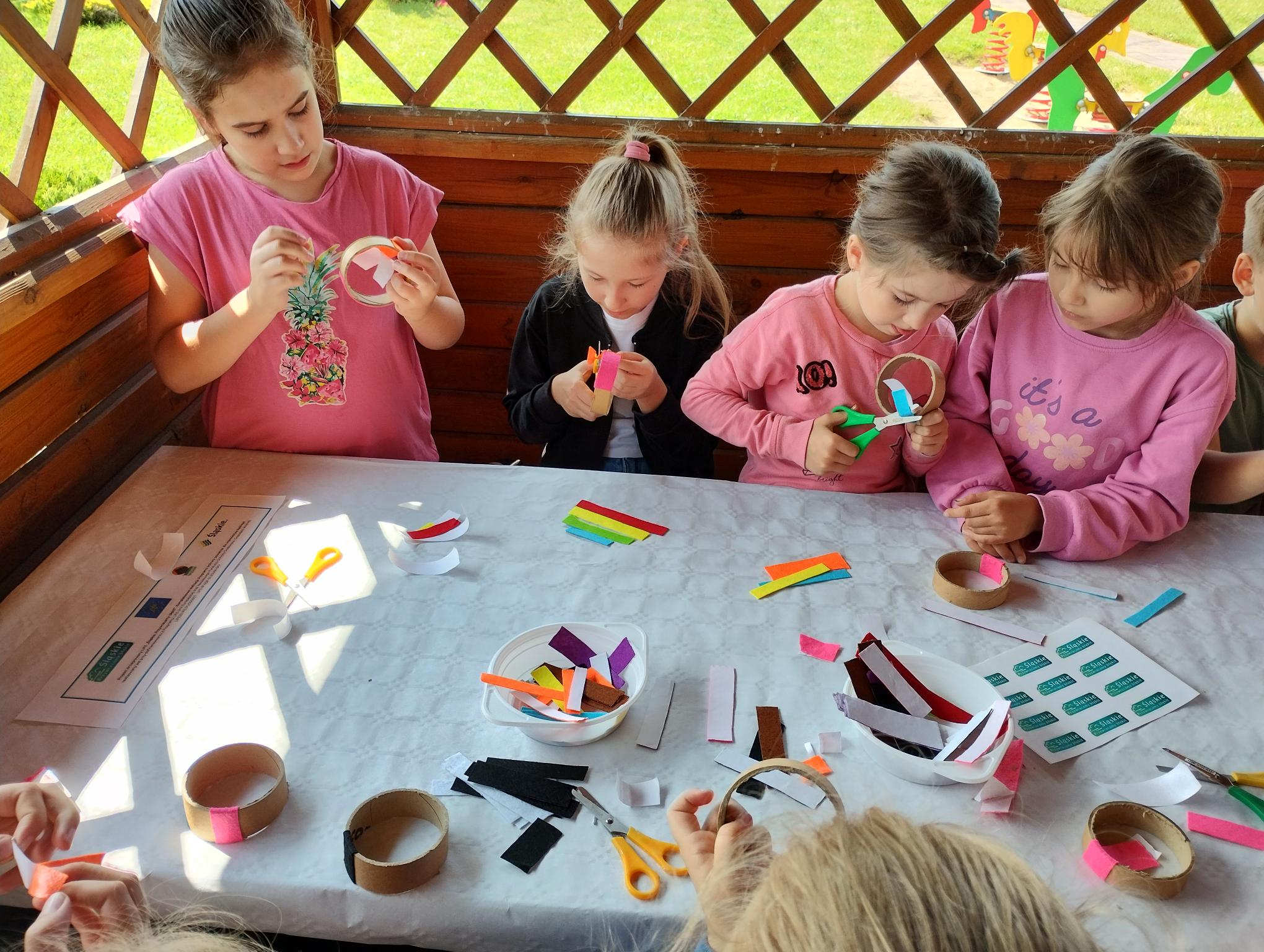 The event also featured eco-themed workshops for children, organized in collaboration with the Miedźno Municipal Cultural Center. Younger children made bracelets from cardboard rolls, while older participants created lanterns from glass jars. These hands-on activities not only fostered creativity but also taught children how to reuse materials in environmentally friendly ways.