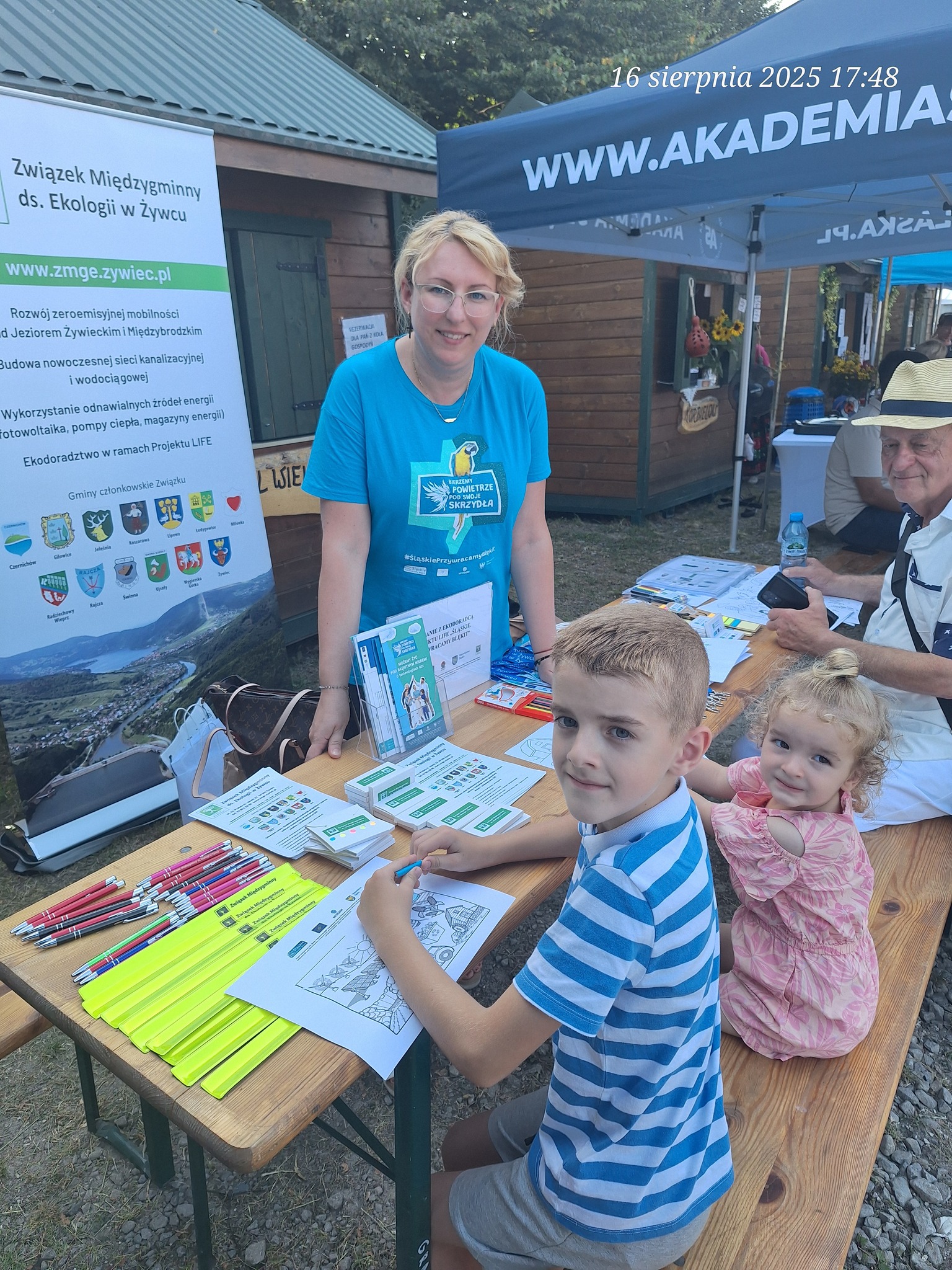 The atmosphere at the stand also favored adults. While the children were engaged in riddles, parents and guardians could take the opportunity to talk with Beata Ligocka. The conversations touched on crucial topics: the anti-smog resolution, possibilities of replacing non-ecological heating sources, building thermal modernization, renewable energy technologies, and available funding sources. The eco-manager answered questions, explained the details of support programs, and encouraged the use of available subsidies. Each interested person received leaflets and information materials about the “Silesia. Blue Sky Restored” program, as well as an invitation to further contact with the eco-manager at ZMGE Żywiec.