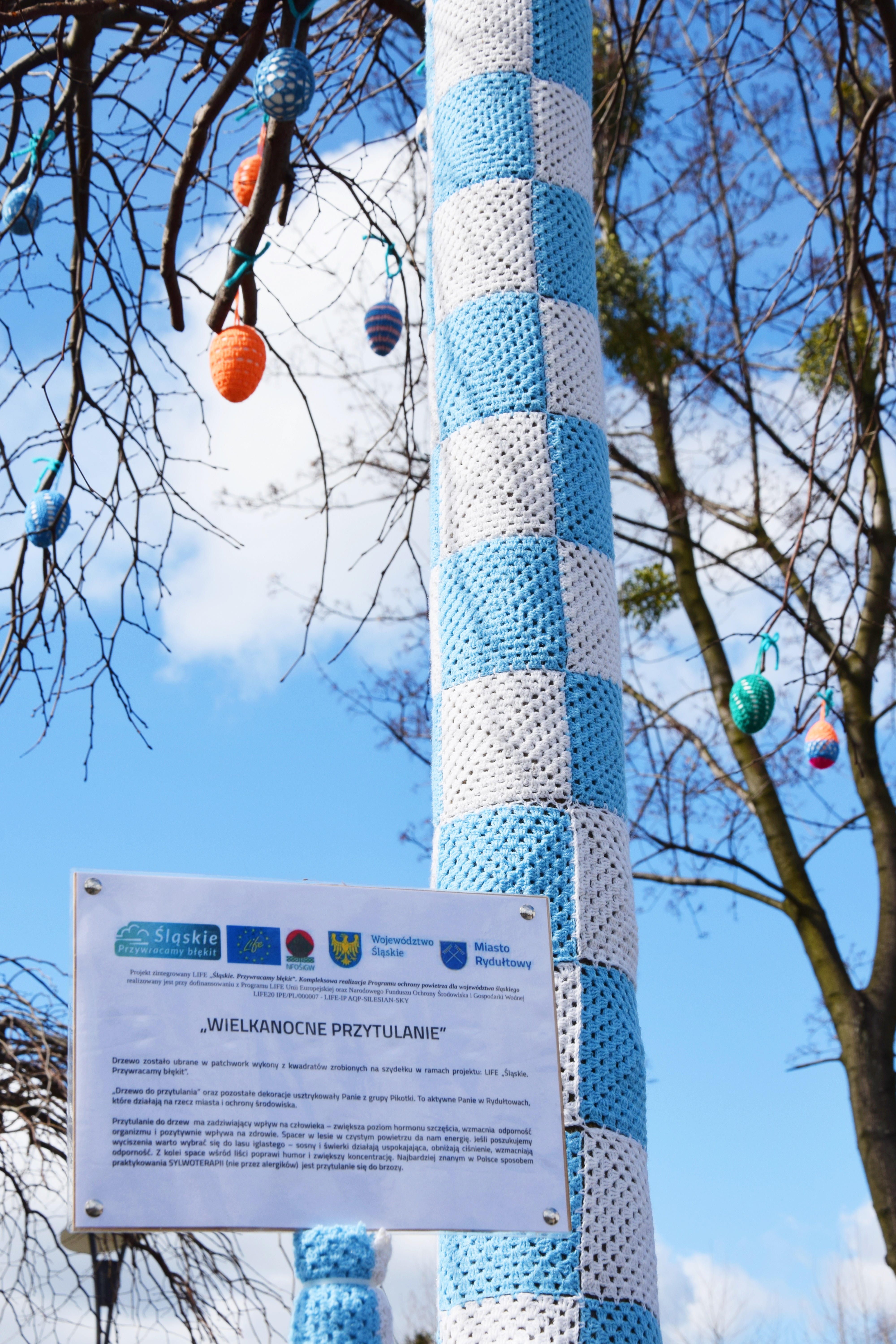 In addition, decorative Easter eggs were hung on the tree. Also there is a board next to the tree with information about the impact of the nature on our health, well-being and about the project "Silesia. Blue sky restored".