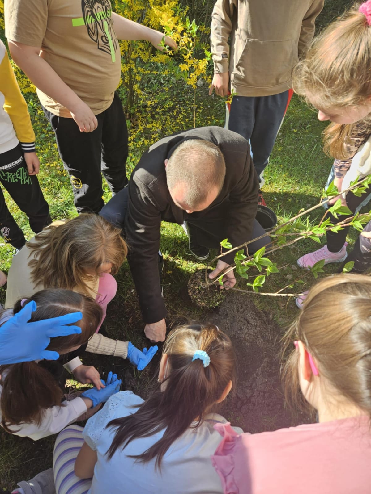 The final part of the event was the ceremonial planting of hydrangeas in the schoolyard, accompanied by a conversation about the importance of caring for plants and the natural environment around us. The discussion emphasized the value of greenery in public spaces and encouraged students to actively protect nature in their immediate surroundings.