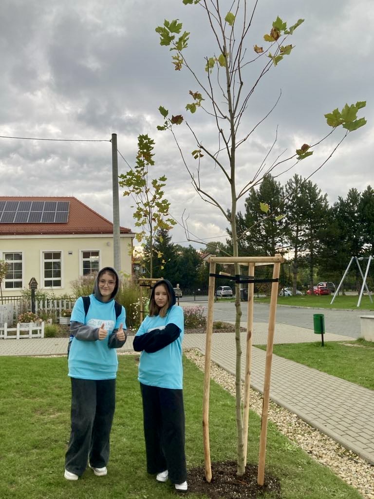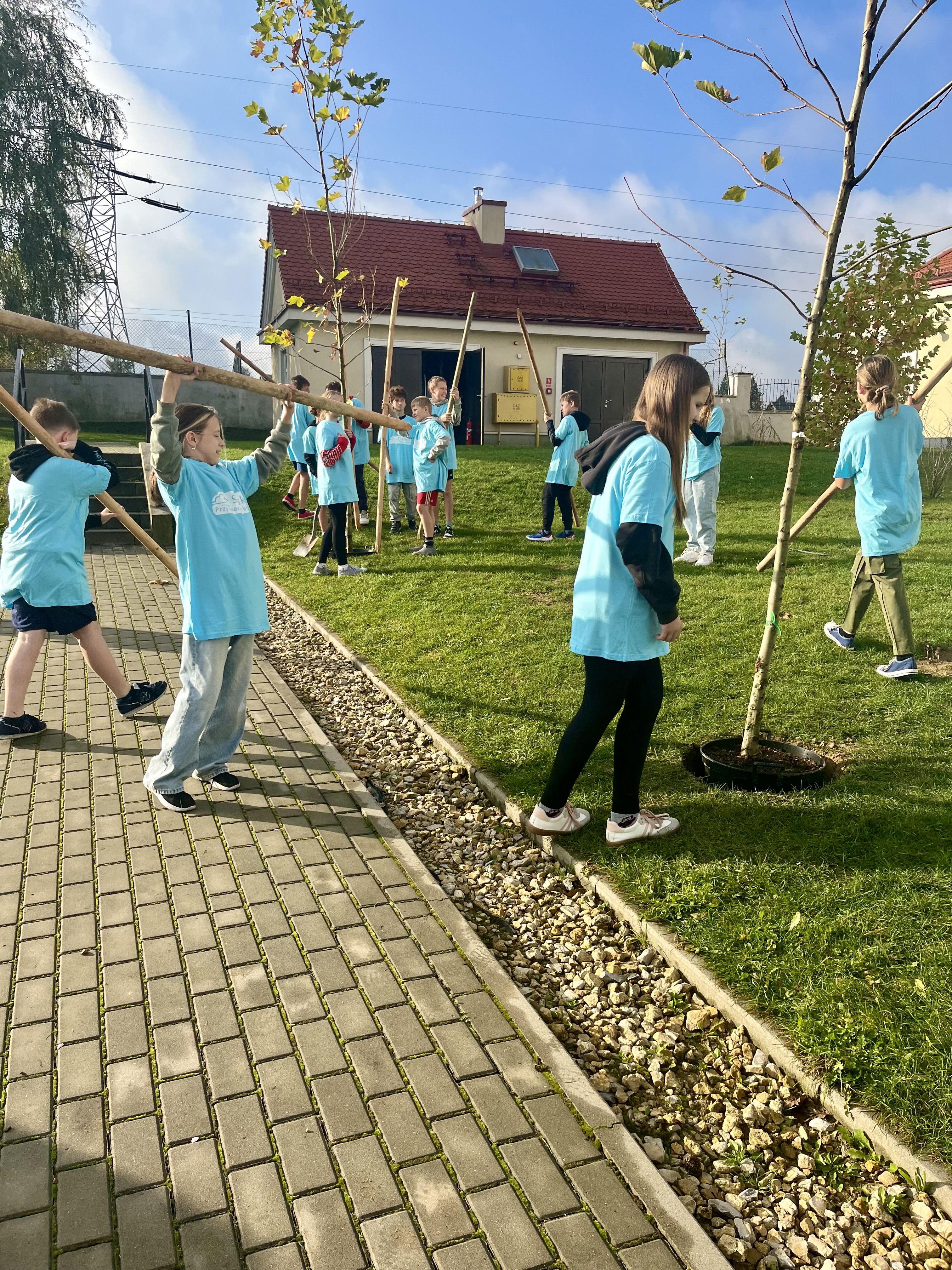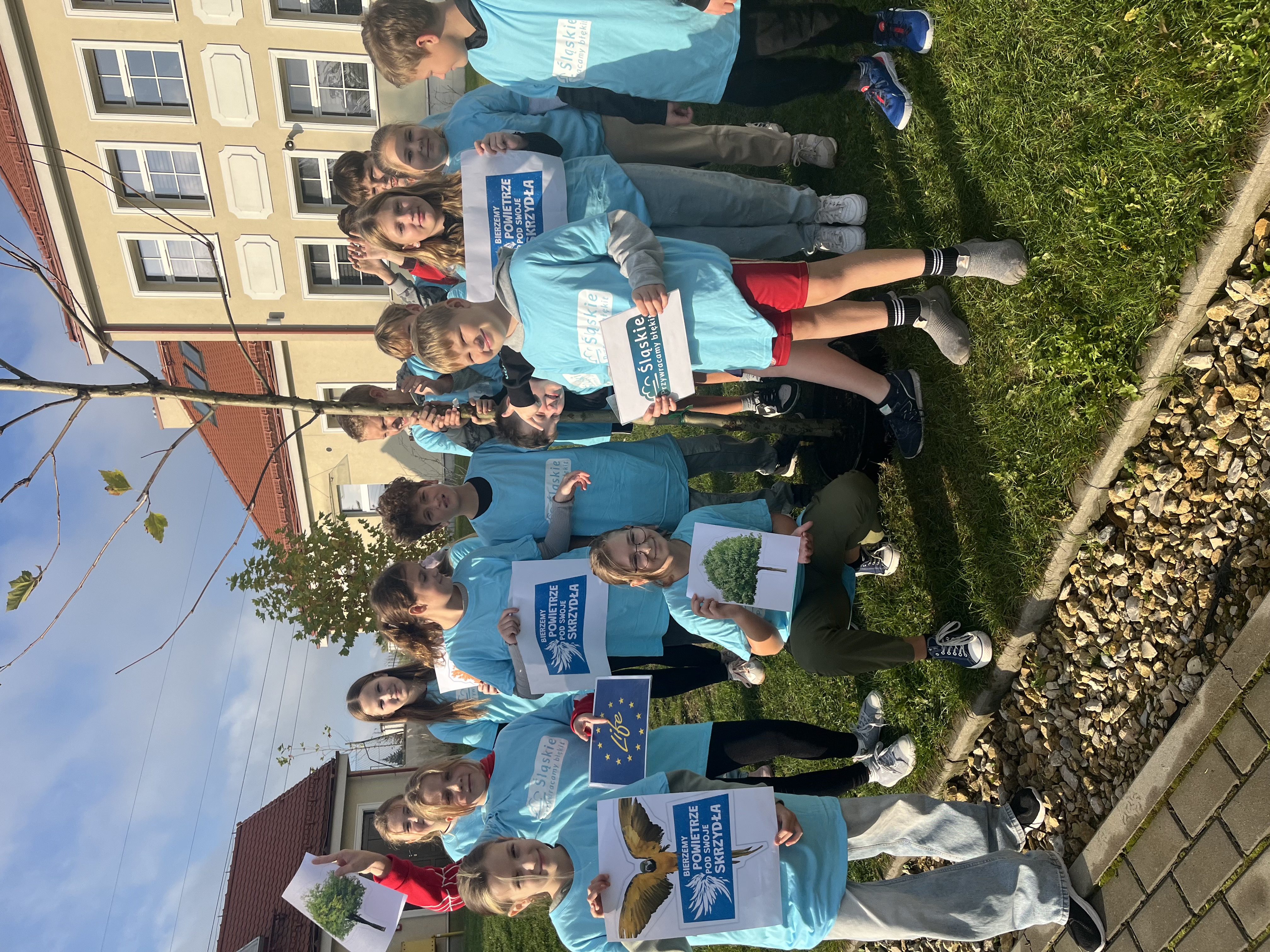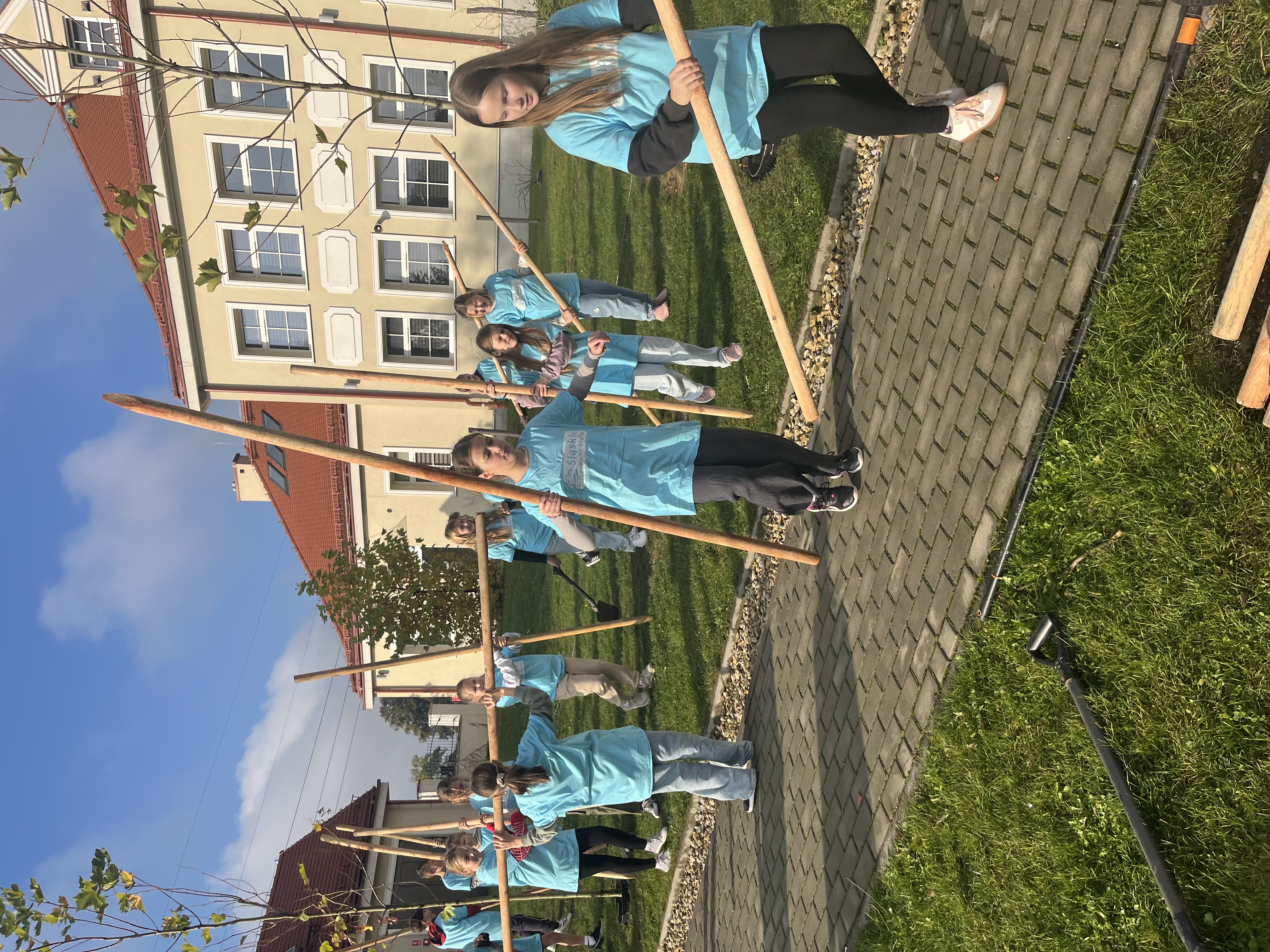 The School's Anti-Smog Team, which operates as part of the LIFE program “Silesia. Blue Sky Restored,” along with the students, under the supervision of Edyta Garlińska, the eco-manager of Jastrzębie-Zdrój, planted six magnificent plane trees. Together with the students, the trees were also planted by the school principal, Beata Cisek.These trees will not only enhance the aesthetic of the school grounds but also contribute significantly to improving air quality, producing oxygen, and providing shade during hot days.