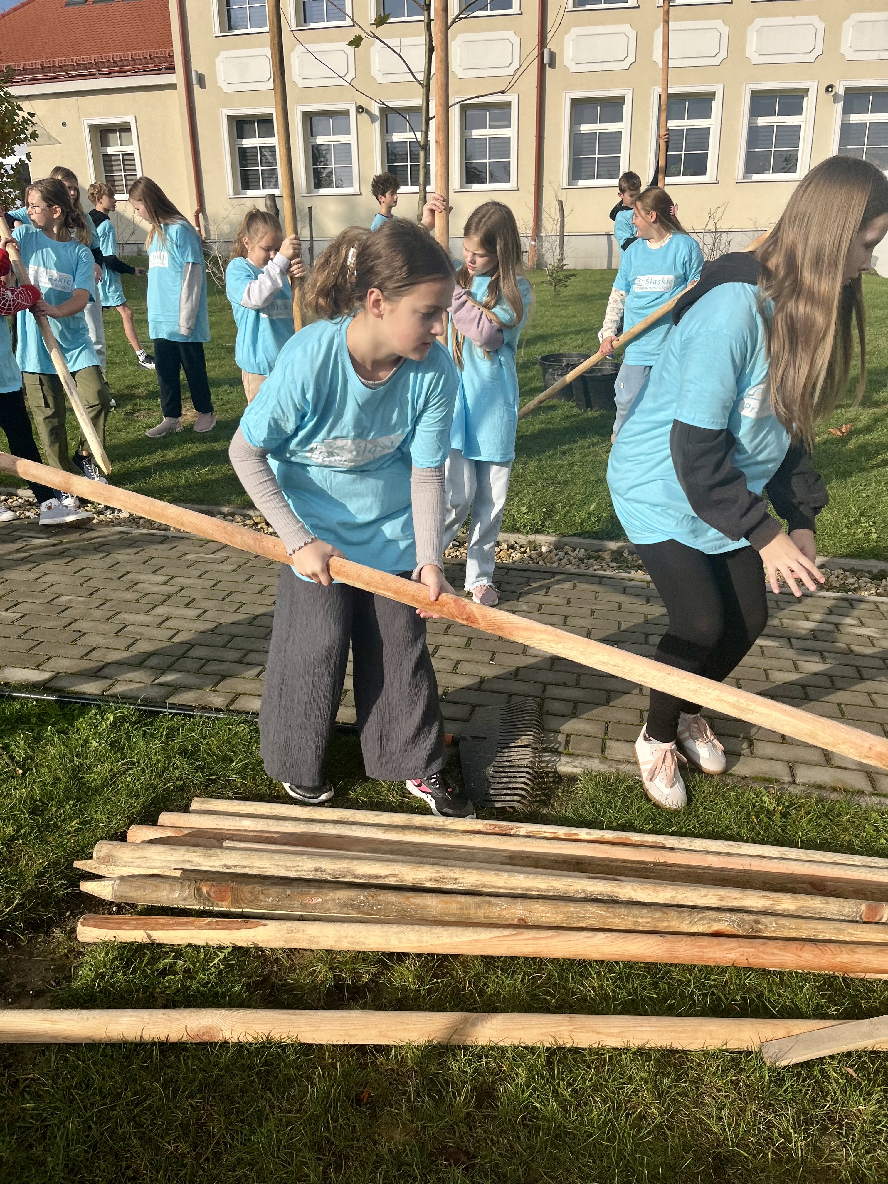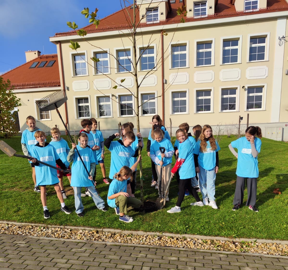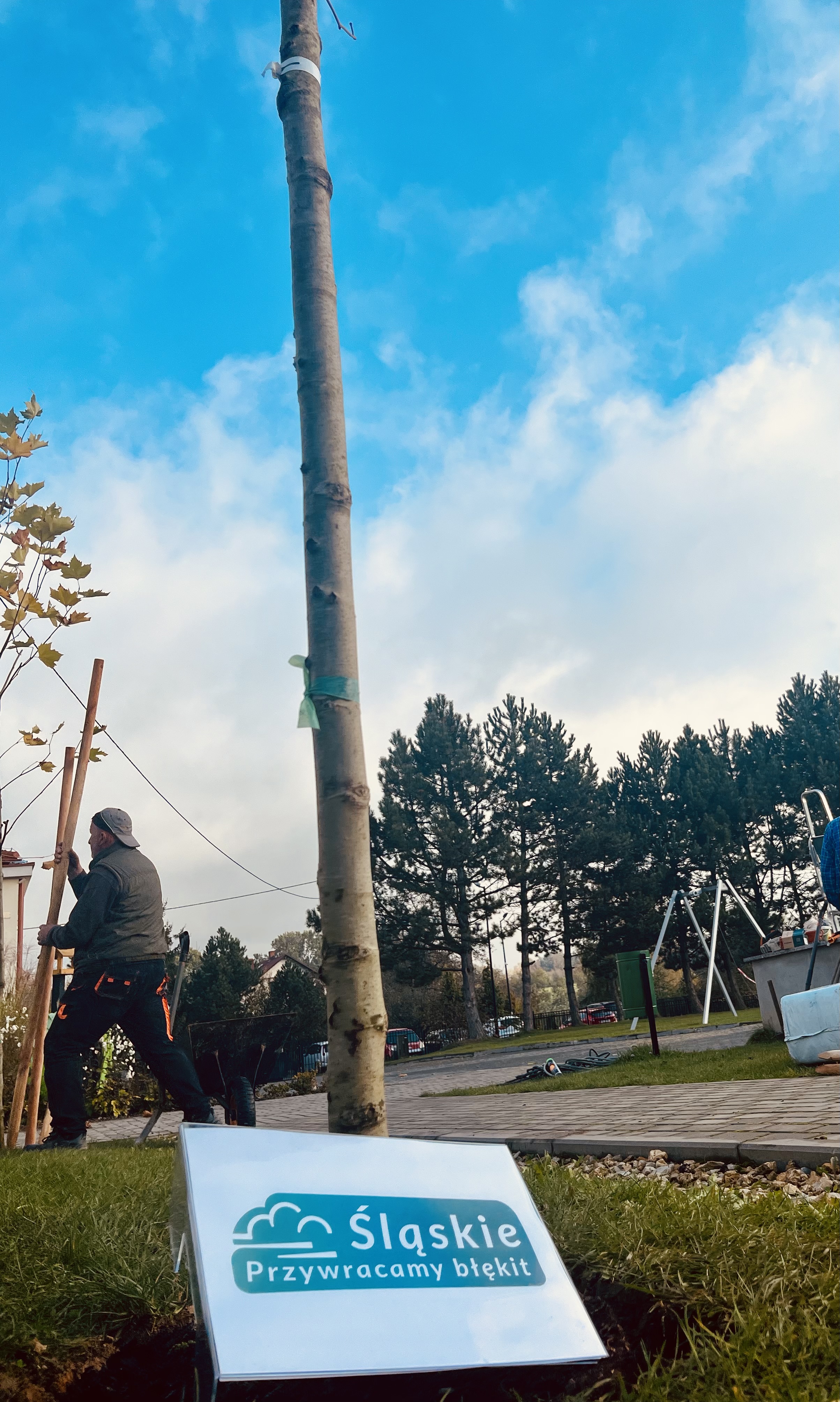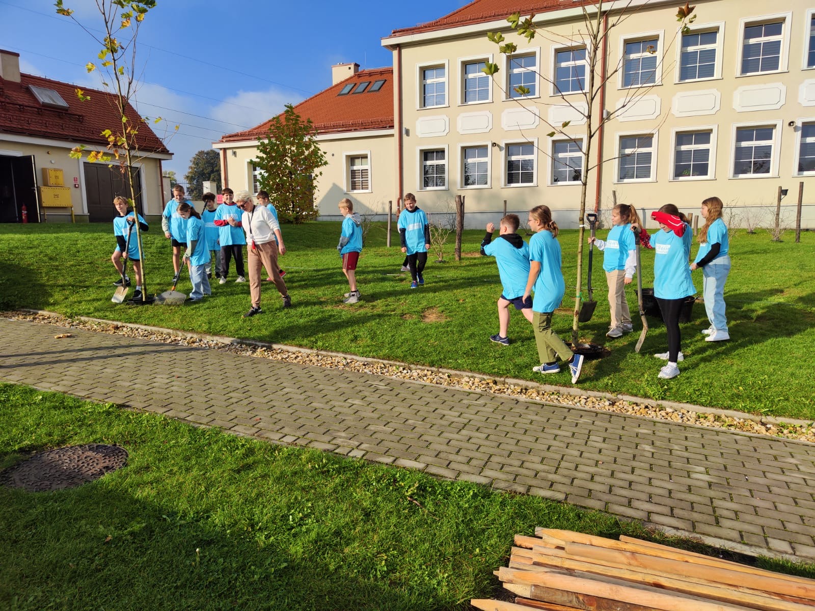 The School's Anti-Smog Team, which operates as part of the LIFE program “Silesia. Blue Sky Restored,” along with the students, under the supervision of Edyta Garlińska, the eco-manager of Jastrzębie-Zdrój, planted six magnificent plane trees. Together with the students, the trees were also planted by the school principal, Beata Cisek.These trees will not only enhance the aesthetic of the school grounds but also contribute significantly to improving air quality, producing oxygen, and providing shade during hot days.