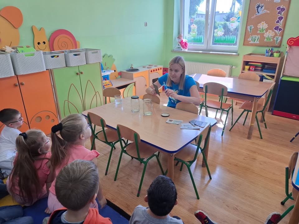 On May 8, a special educational activity titled “Guardians of Clean Air” took place at the Preschool in Chałupki. The event was led by Angelika Krupa – the eco-manager of the Municipality of Krzyżanowice and the initiator of this inspiring initiative aimed at raising environmental awareness among the youngest residents.