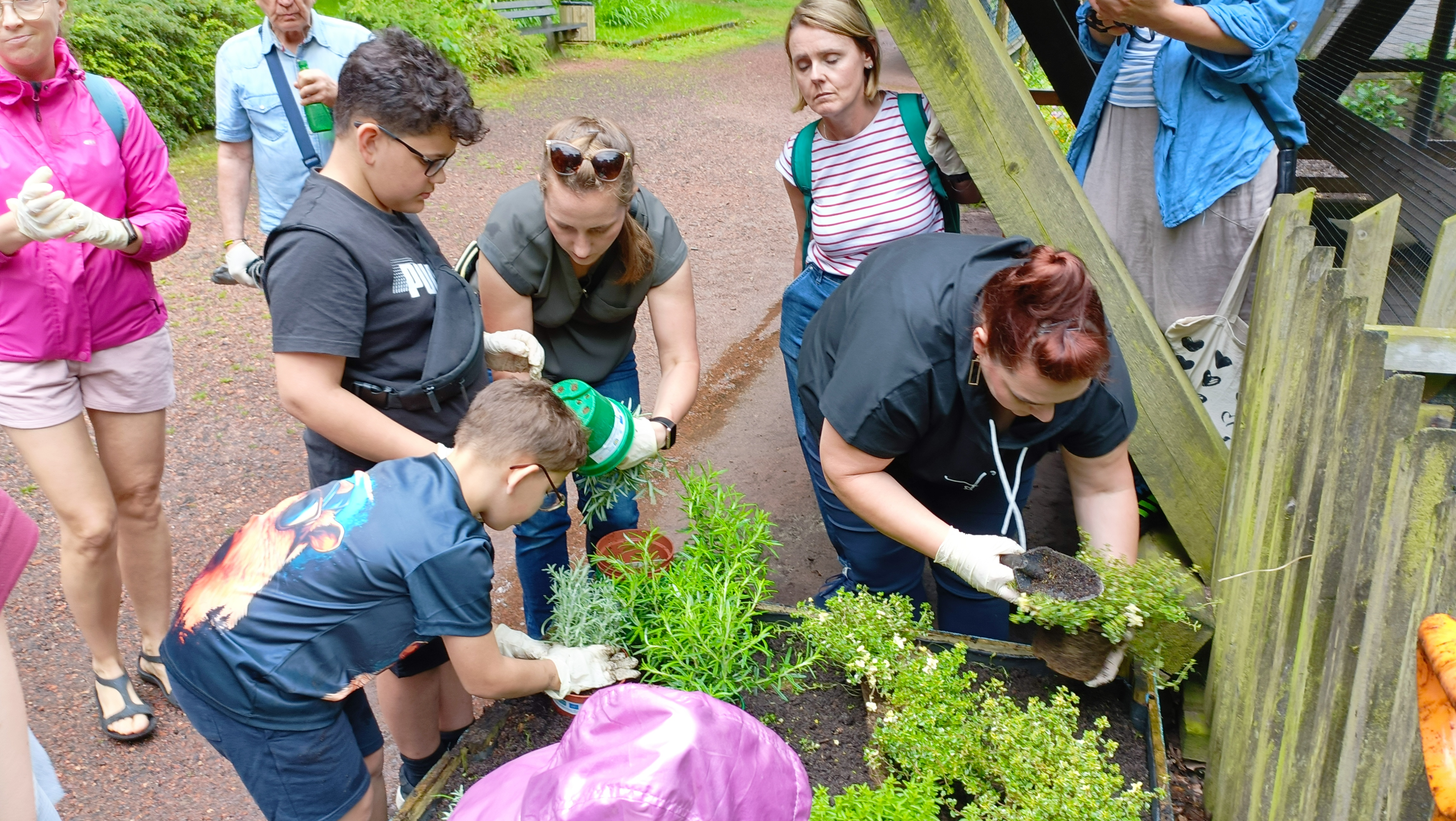 Herbs planted in the bed included curry, rosemary, oregano, and marjoram. All plants and garden tools were funded by the “Silesia. Blue Sky Restored” project. The planter will remain as a permanent feature in the arboretum, showcasing sustainable garden design.