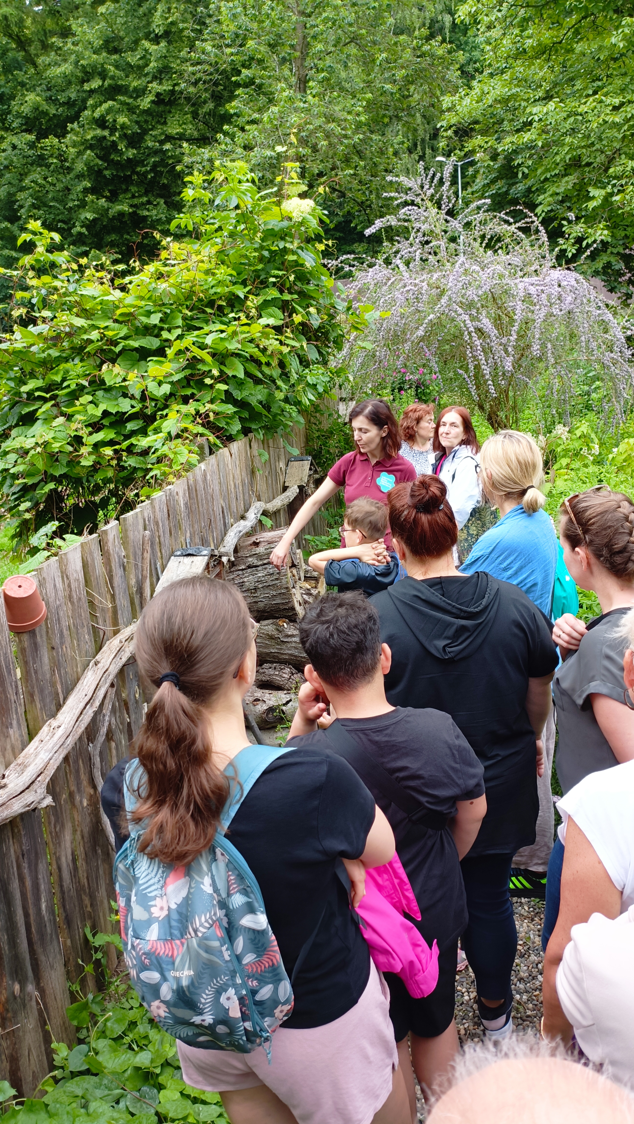 They also toured the arboretum’s “Useful Garden Beds”, designed according to permaculture principles. These beds feature pollinator-friendly herbs, berry shrubs for birds, bee hotels for solitary species like mason bees, ground-level bumblebee houses, and bird waterers, creating a thriving, balanced microhabitat.