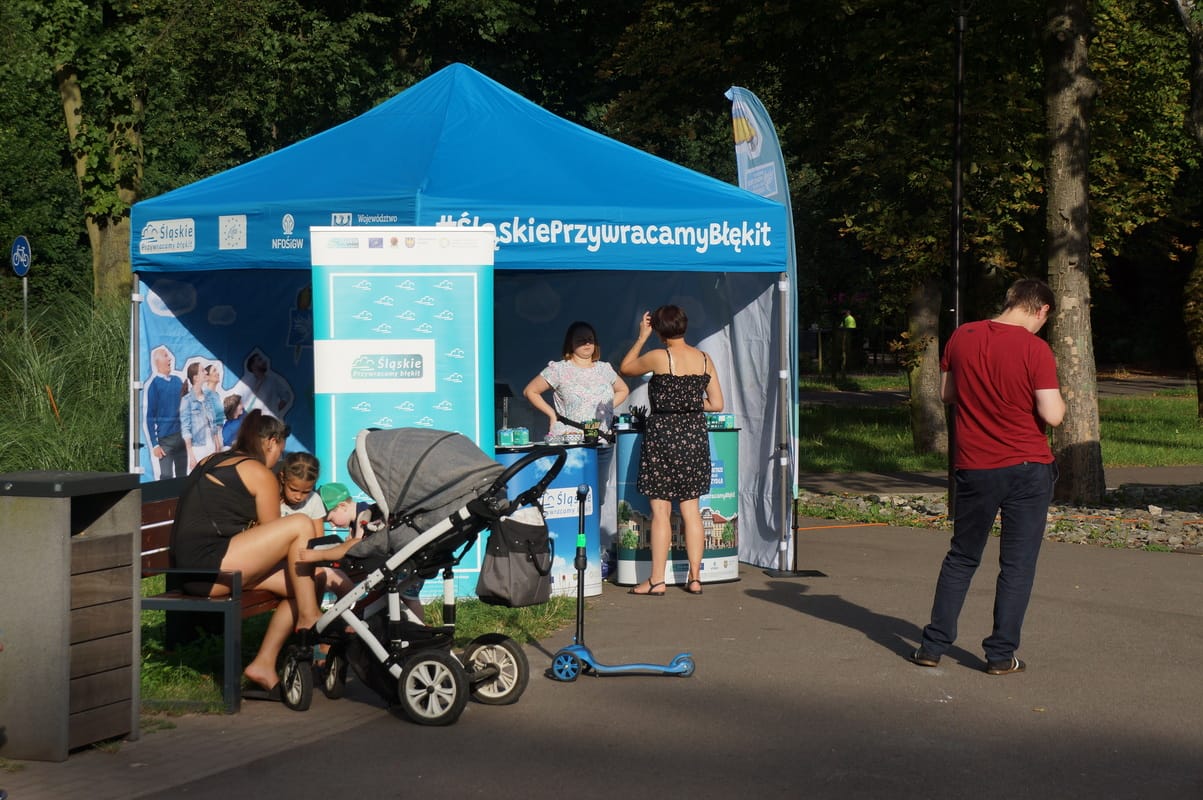 The Castle Park in Mysłowice was bustling with life during the first event. Under the guidance of subregional eco-managers Agnieszka Bujok and Agnieszka Szwaja, participants had the opportunity to learn a lot about ecological heat sources, energy efficiency, renewable energy technologies, building thermal modernization, and financing options. The "Silesia. Blue Sky Restored" booth was extremely popular among both children and adults.
