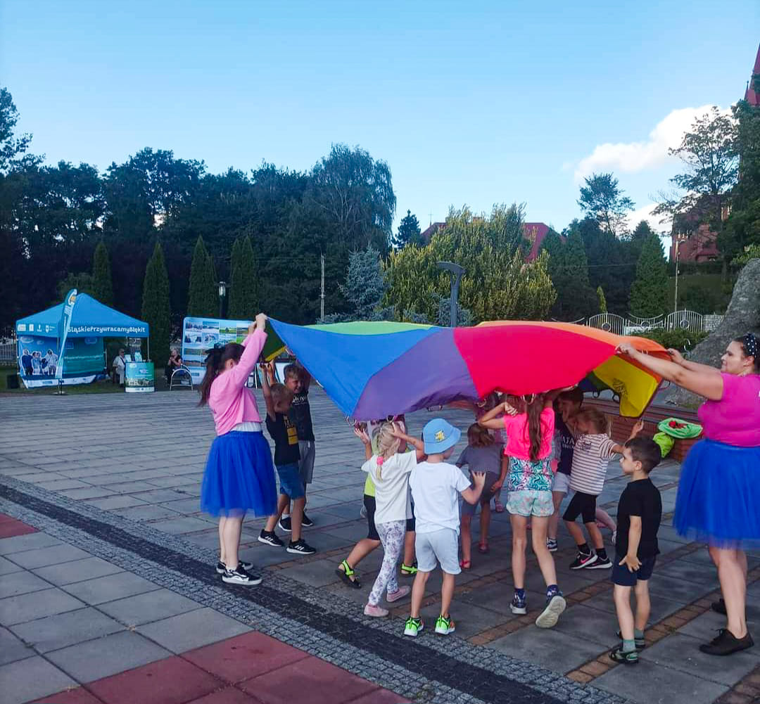During the event, Marklowice residents visited the "Silesia. Blue Sky Restored " booth in large numbers, where they could gain valuable knowledge and enjoy popcorn. The afternoon was filled with games, animations, and laughter thanks to the Alee Frajda Education and Animation Center.