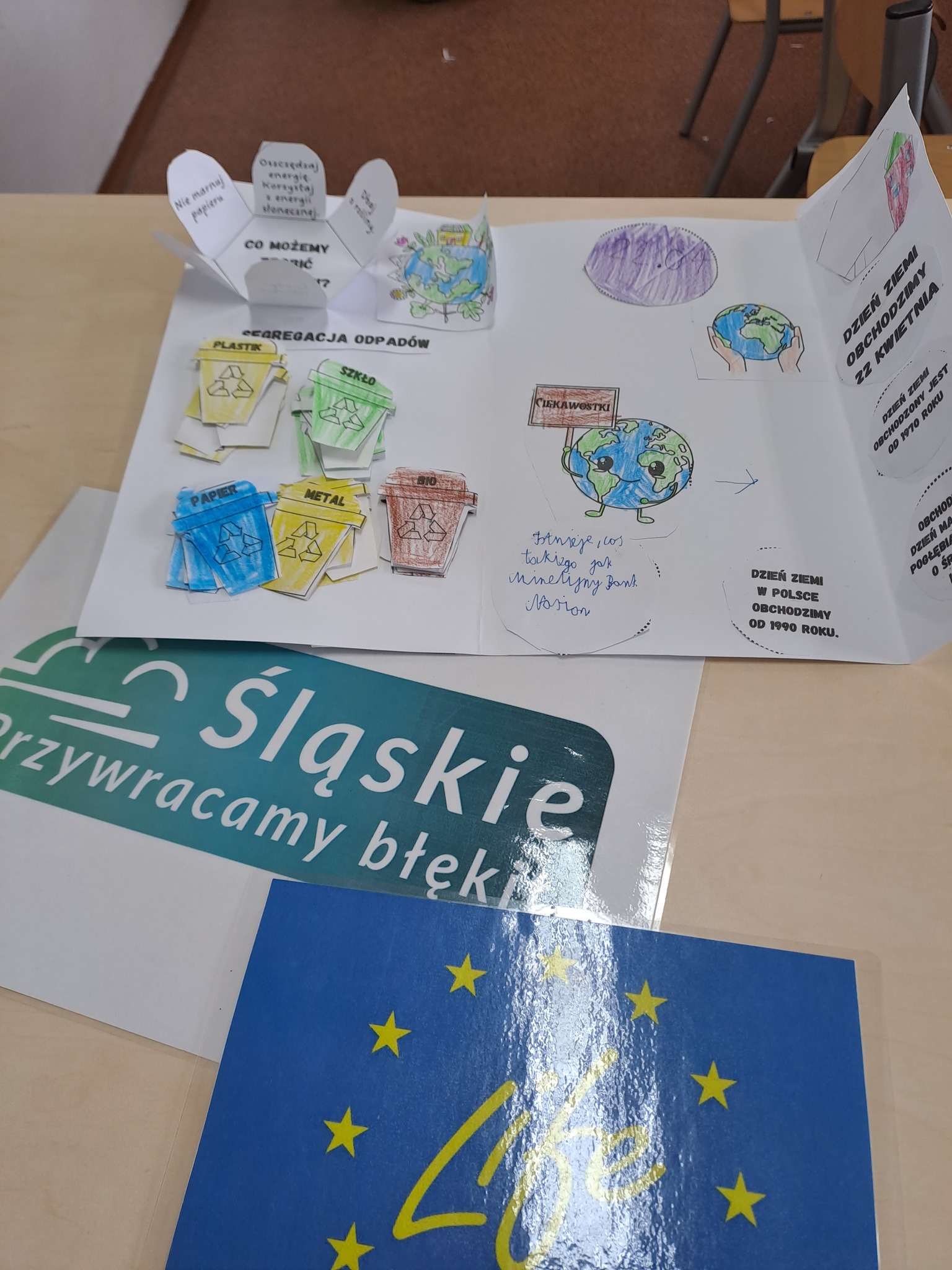 "Lapbook Earth Day" is a unique proposition for conducting workshops. A lapbook is a form of creative presentation of information on a specific topic. Mostly a briefcase, sometimes a larger or smaller sheet with the possibility of folding. In it, in the form of drawings, charts, opened windows and movable elements, selected content is conveyed. It has the advantage over the classic written word that it arouses curiosity and motivates the child to discover hidden curiosities, as well as to collect them.
