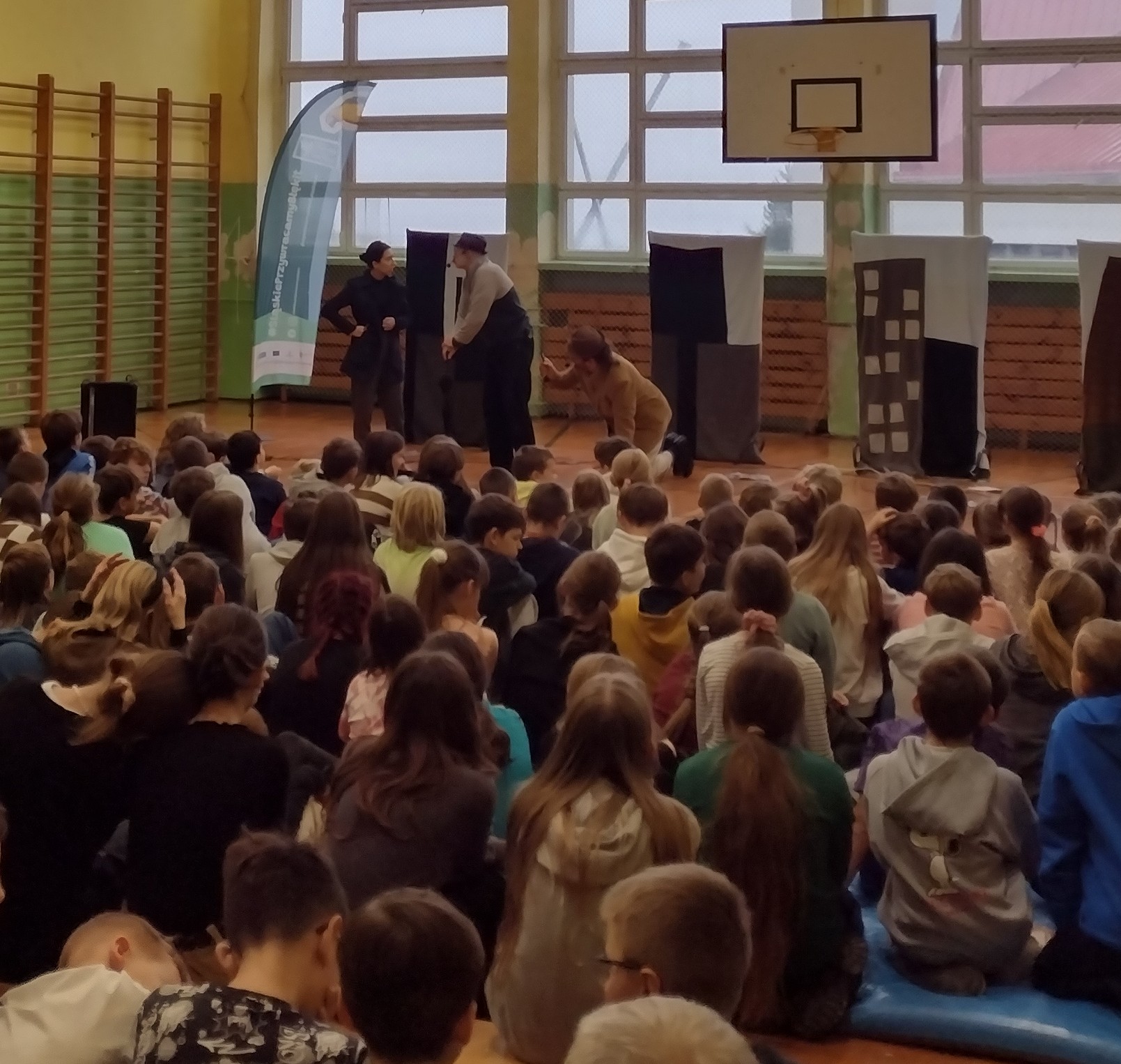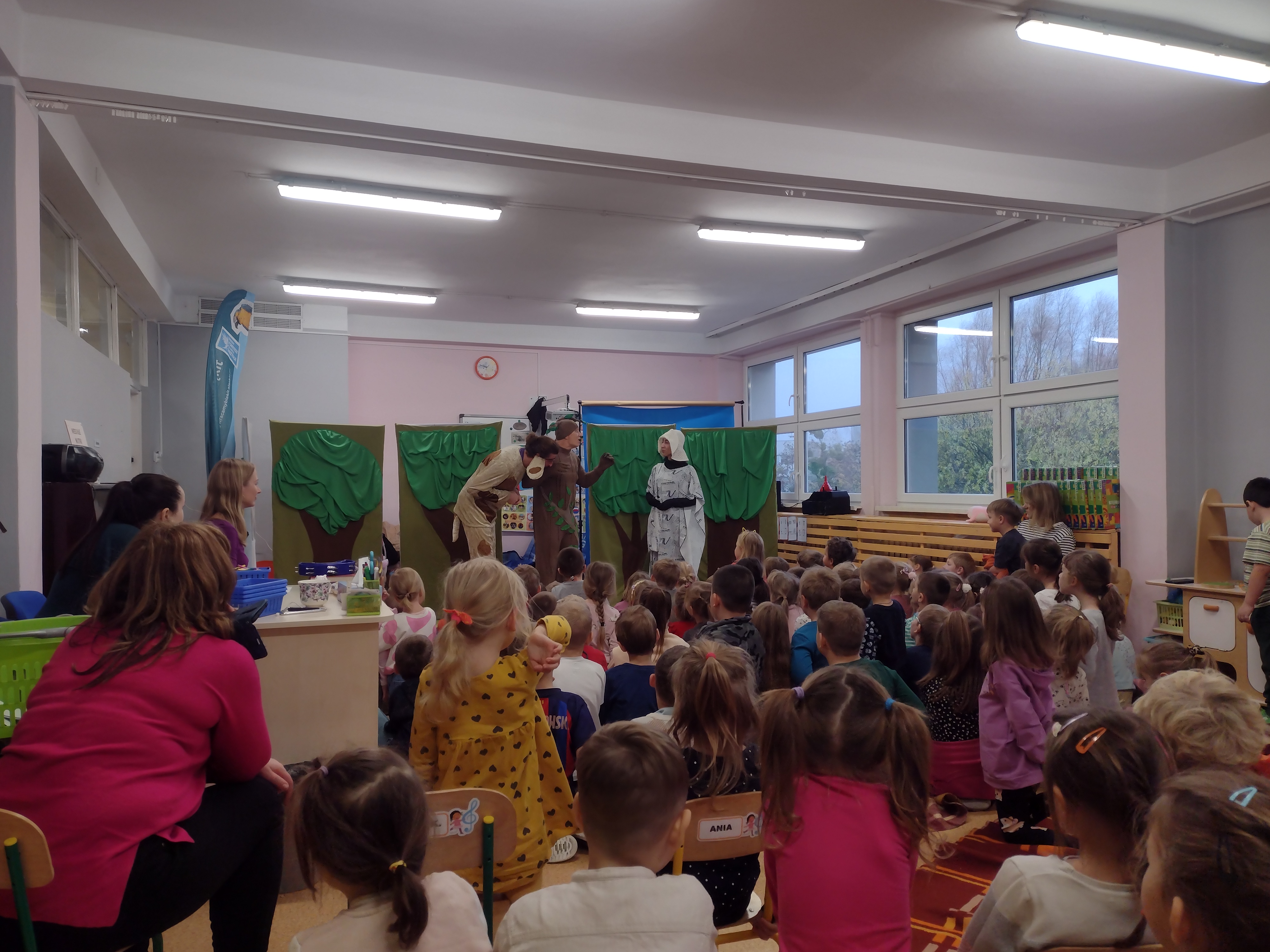 The "Tarnogórski EcoWeek with the Śląscy Family" is behind us, and it's time for a summary. During the week, seven theatrical performances for children and youth were organized. The artists visited three kindergartens (No. 17, 20, and 24), three primary schools (No. 8, 13, and 15), and performed at the Tarnogórski Center of Culture for children from five downtown kindergartens (No. 1, 2, 4, 6, and 11) and two primary schools (No. 3 and 9).