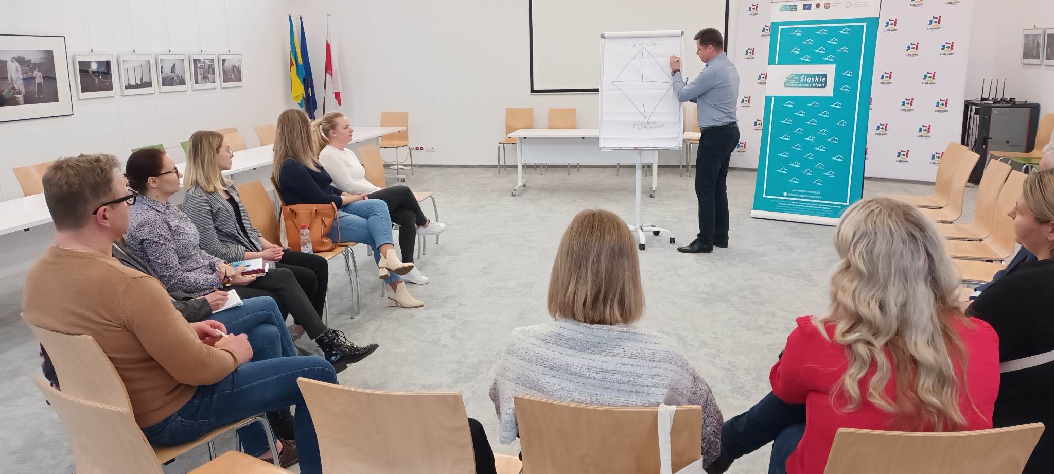 The workshops were aimed at improving the competences of eco-managers of the project "Silesia. Blue sky restored” and advisers for “Clean Air” in the field of working with a difficult client.
