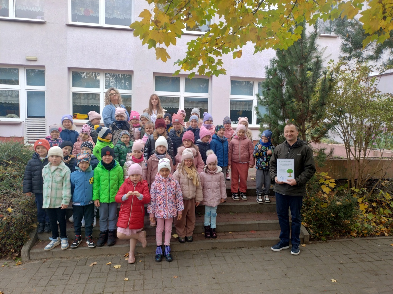 W każdej z placówek dzieci z entuzjazmem włączały się w przygotowania do sadzenia, odpowiadały na pytania dotyczące drzew oraz obiecały dbać o nowo posadzone rośliny.